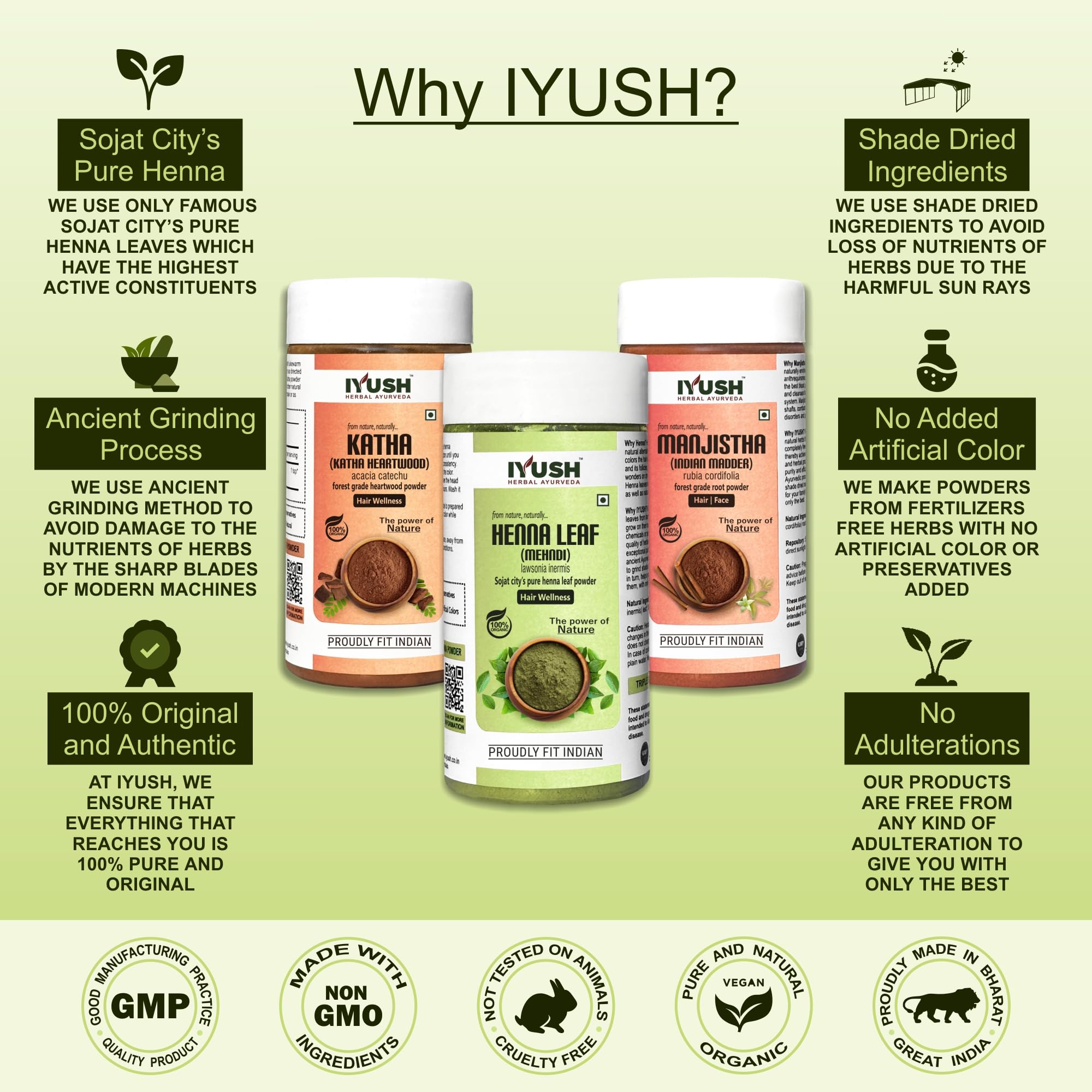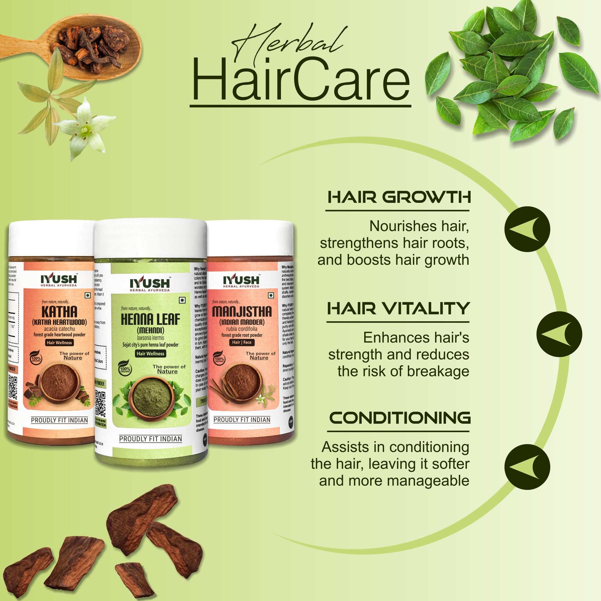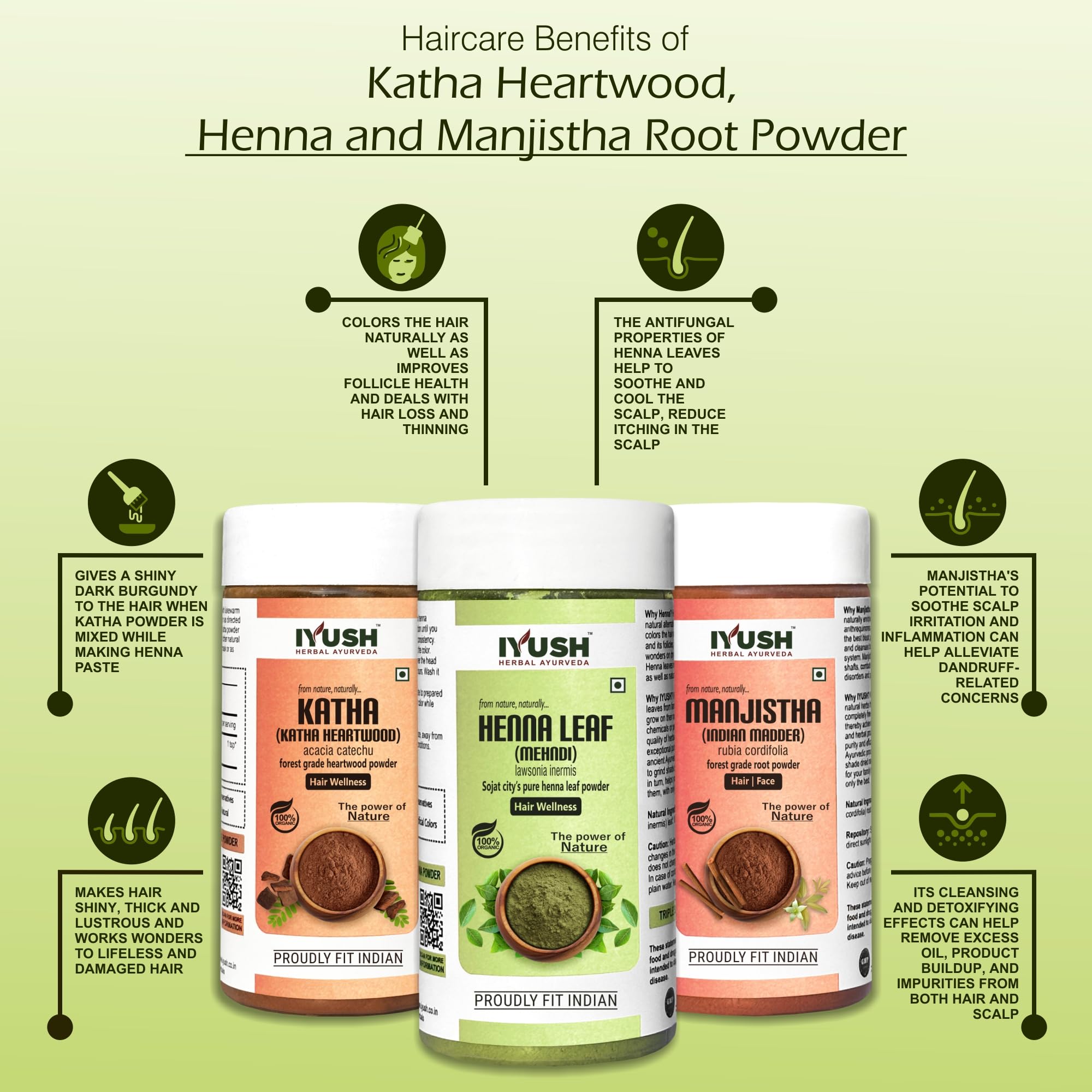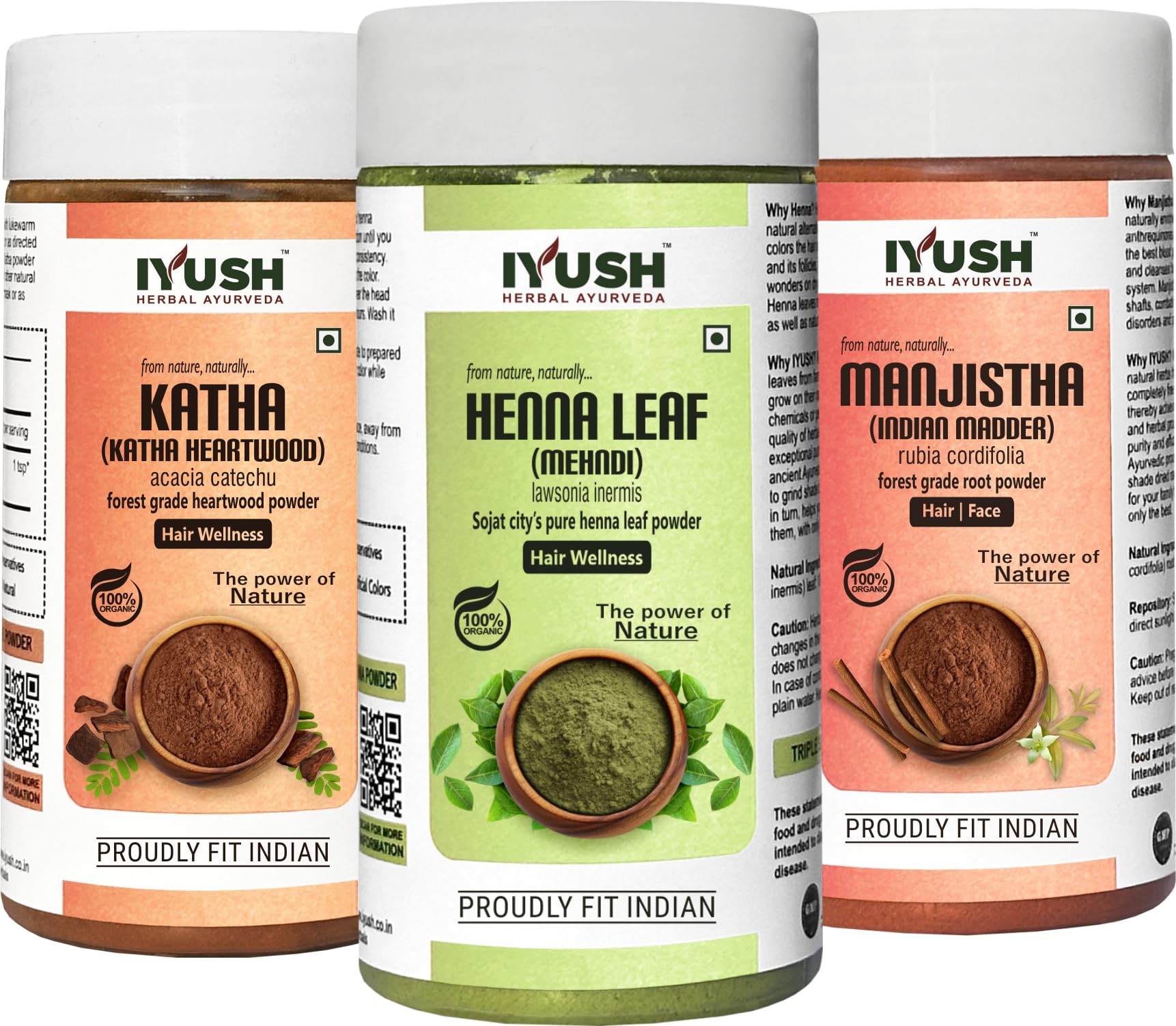 IYUSH Herbal Ayurveda Manjistha Powder with Katha Powder for Hair and Henna Powder for Hair Colour 300gm | Natural Hair Colour | Hair Volume Powder | Hair Mask for Hair Growth | 100gm each