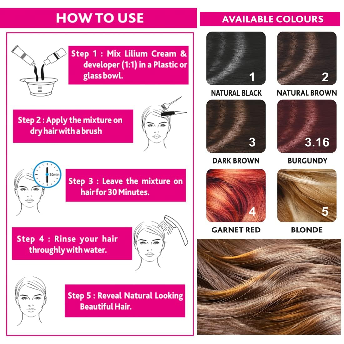 Revitalize your hair with Lilium Burgundy Hair Color Cream in a convenient 100ml pack. Say hello to rich captivating burgundy hues that last and nourish your locks from root to tip. Our expertly crafted formula ensures vibrant long-lasting color that won't fade giving you a bold and beautiful look that stands out from the crowd. Each application leaves your hair with a silky-smooth finish thanks to the nourishing ingredients that promote healthy luscious locks. Easy to use and suitable for all hair types our Burgundy Hair Color Cream guarantees effortless application and complete gray coverage.