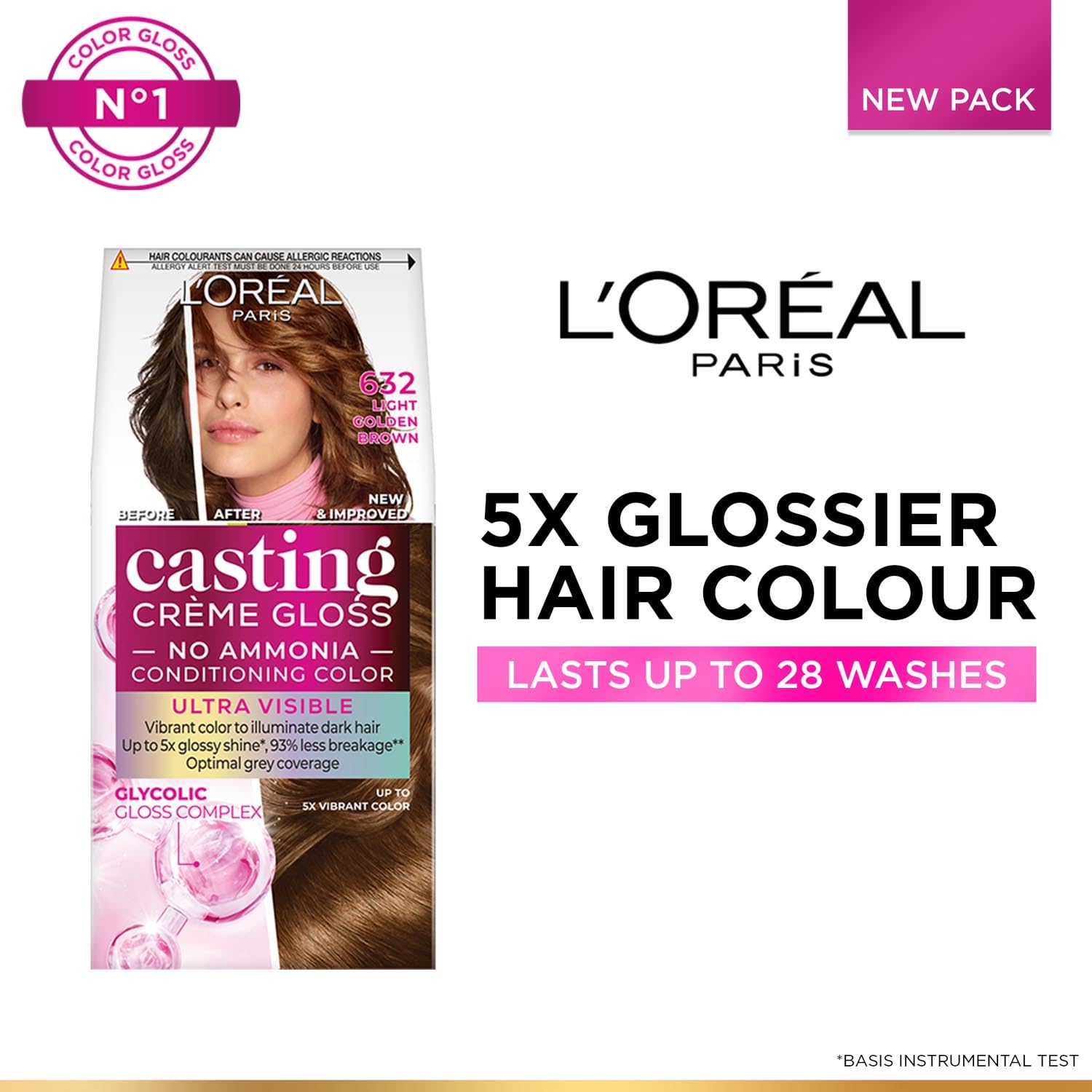 Looking to get holiday hair ready? New to at home colouring? Or maybe you just want to beautify your natural hair colour and blend away your grey hair? Casting Crème Gloss by L'Oreal Paris is a semi permanent hair dye that will help you to achieve a refreshing colour and glossy result in under 30 minutes. Ammonia free for a pleasant smell. The product enriches your hairs natural beauty and visibly improves your hairs look and feel. The formula enhances the shine and leaves the hair looking revitalised. Always check the colour result on pack depending on current hair colour. Casting Crème Gloss ensures there is a shade for everyone. Follow the instruction leaflet and read the safety information. Be colour safe always patch test 48 hours before use. Directions for hair dye: Please refer to leaflet in the pack.