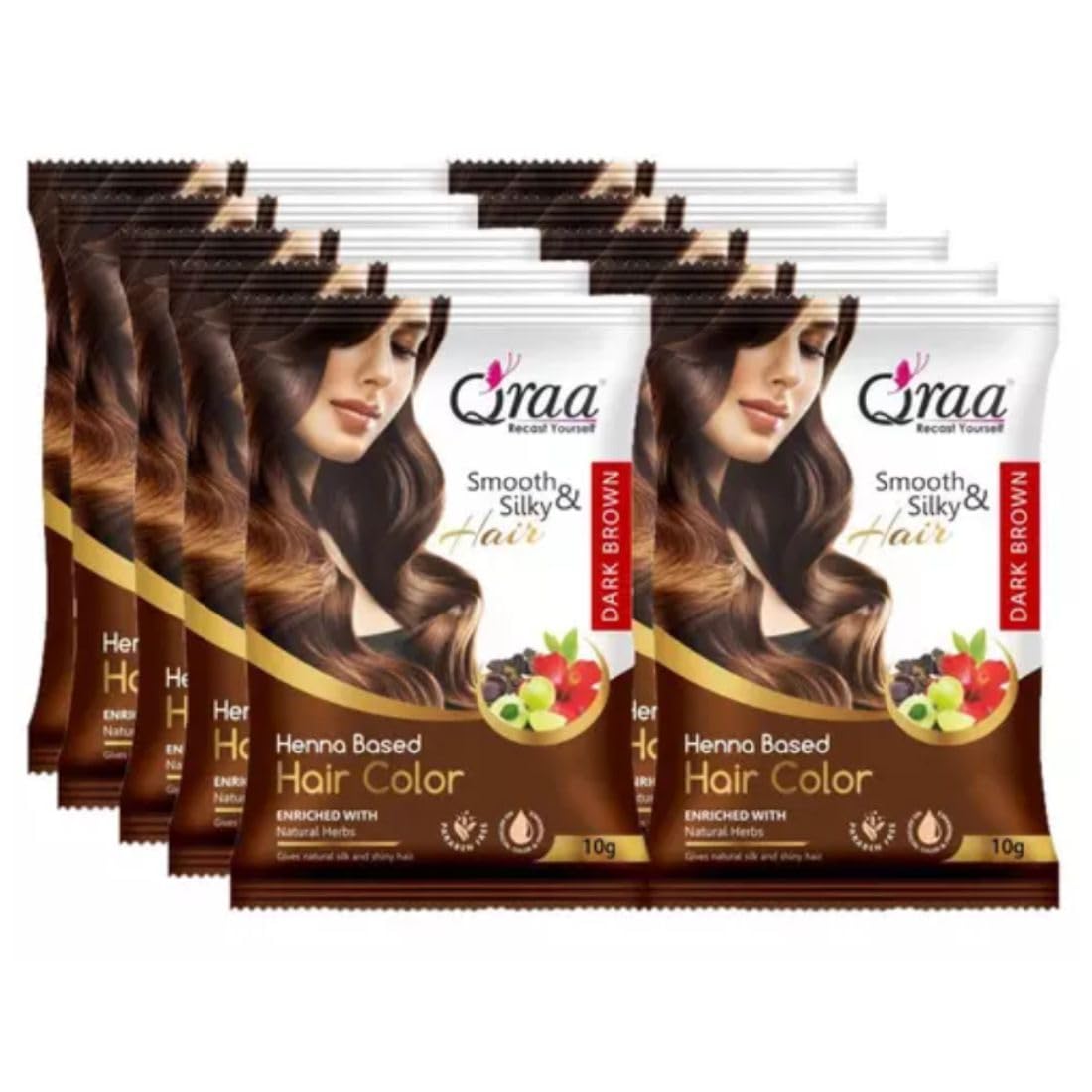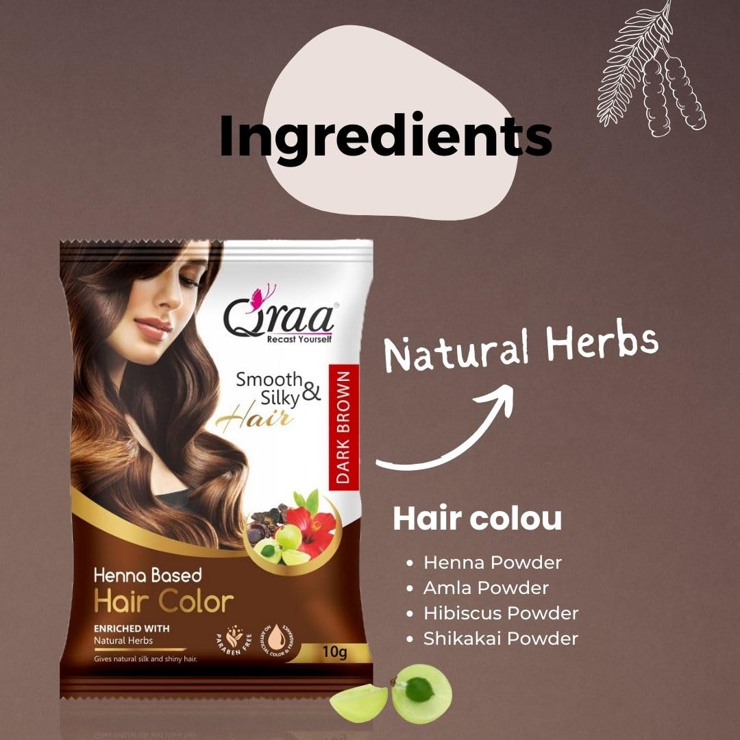 Say goodbye to dull lifeless hair and hello to vibrant natural black locks with Qraa Herbal Hair Color Henna Based Powder. This pack of 10 10g each is the ultimate hair coloring solution for those seeking a natural chemical-free alternative. Infused with the goodness of henna this herbal hair color powder not only adds a rich black hue but also nourishes your hair from root to tip. Get ready to make heads turn with your luscious healthy-looking tresses. Experience the power of nature with Qraa Herbal Hair Color Henna Based Powder and embrace your true beauty today!