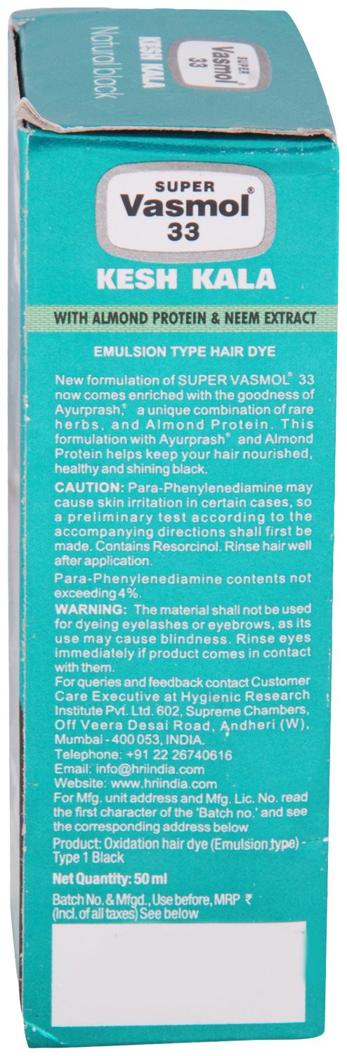New formulation of Super Vasmol 33 now comes enriched with the goodness of ayurprash a unique combination of rare herbs and almond protein which is known to benefit your hair. This formulation with Ayurprash and almond protein helps keep your hair nourished healthy and shining black.