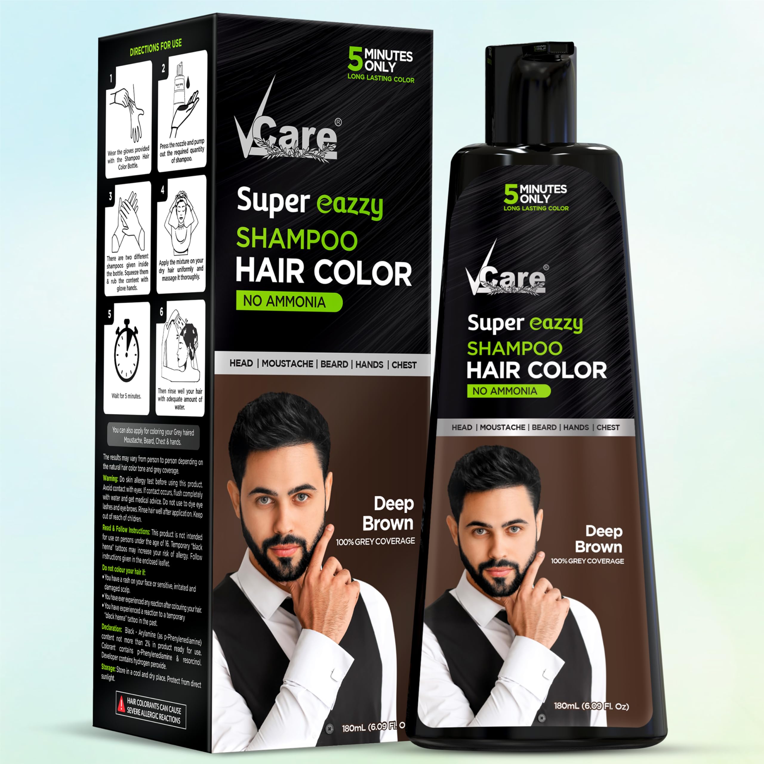 • 5 MINUTES ONLY : Vcare Super Eazzy Deep Brown Hair shampoo is designed to make your hair brown in 5 to 10 minutes. You can use it like a regular shampoo and wash your hair by gently rubbing the shampoo on your head to get brown hair.