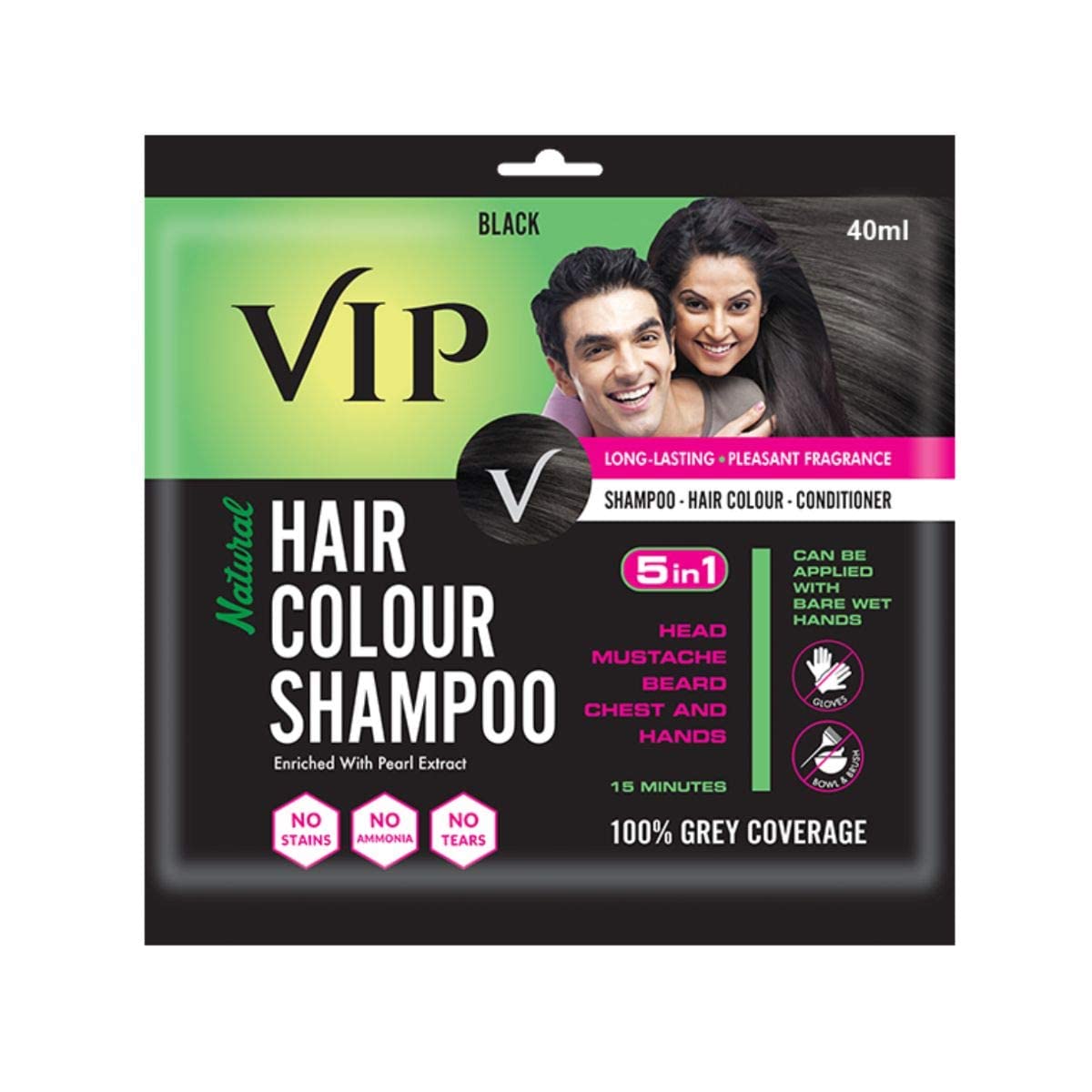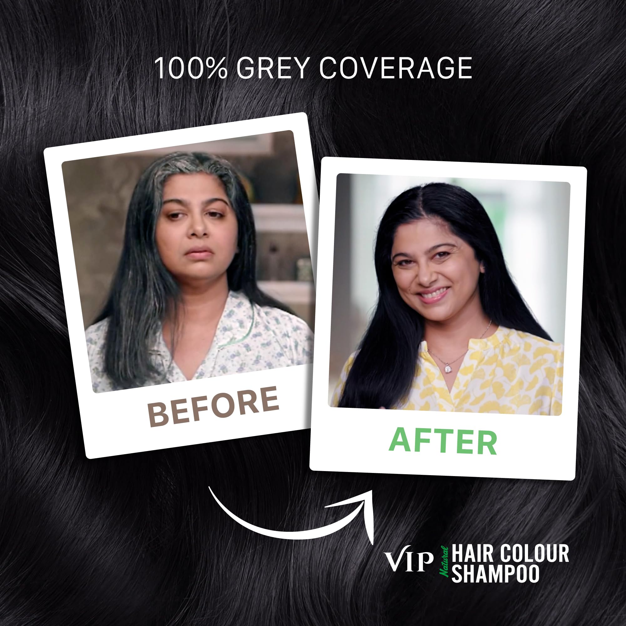 HomeHealth & PersonalHair CareNatural Hair ColorVIP Hair Color Shampoo for Women & Men | 15-Minute Hair Dye | Easy to Use | Natural Black | 240ml (40ml x 6 Pack) | Long-Lasting & Ammonia-Free Color
