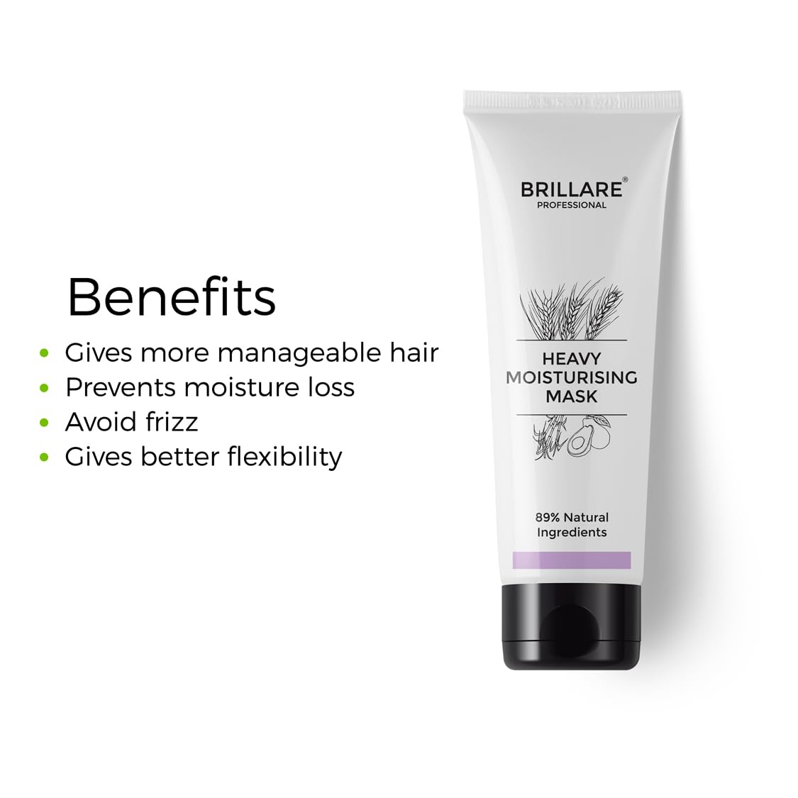 Brillare Professional Heavy Moisturising Hair Mask Natural Conditioner for Dry and Frizzy Hair Enriched with Wheat Protein & Avocado Fruit Deeply Nourishes & Smoothens Dry Hair 125g