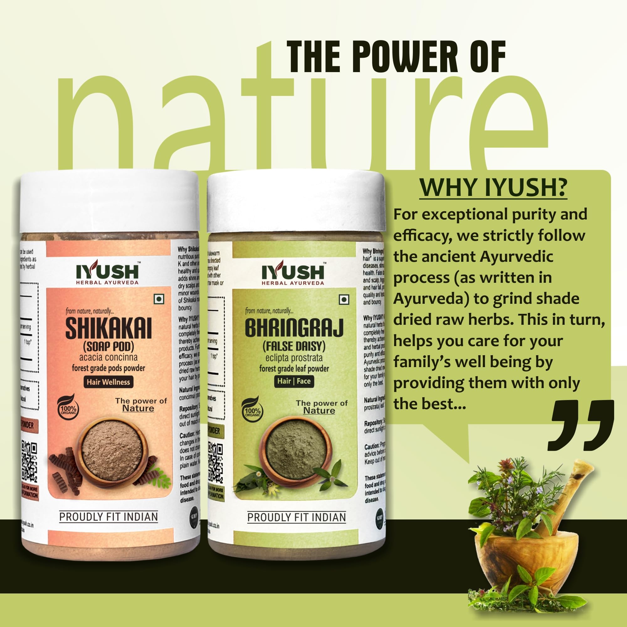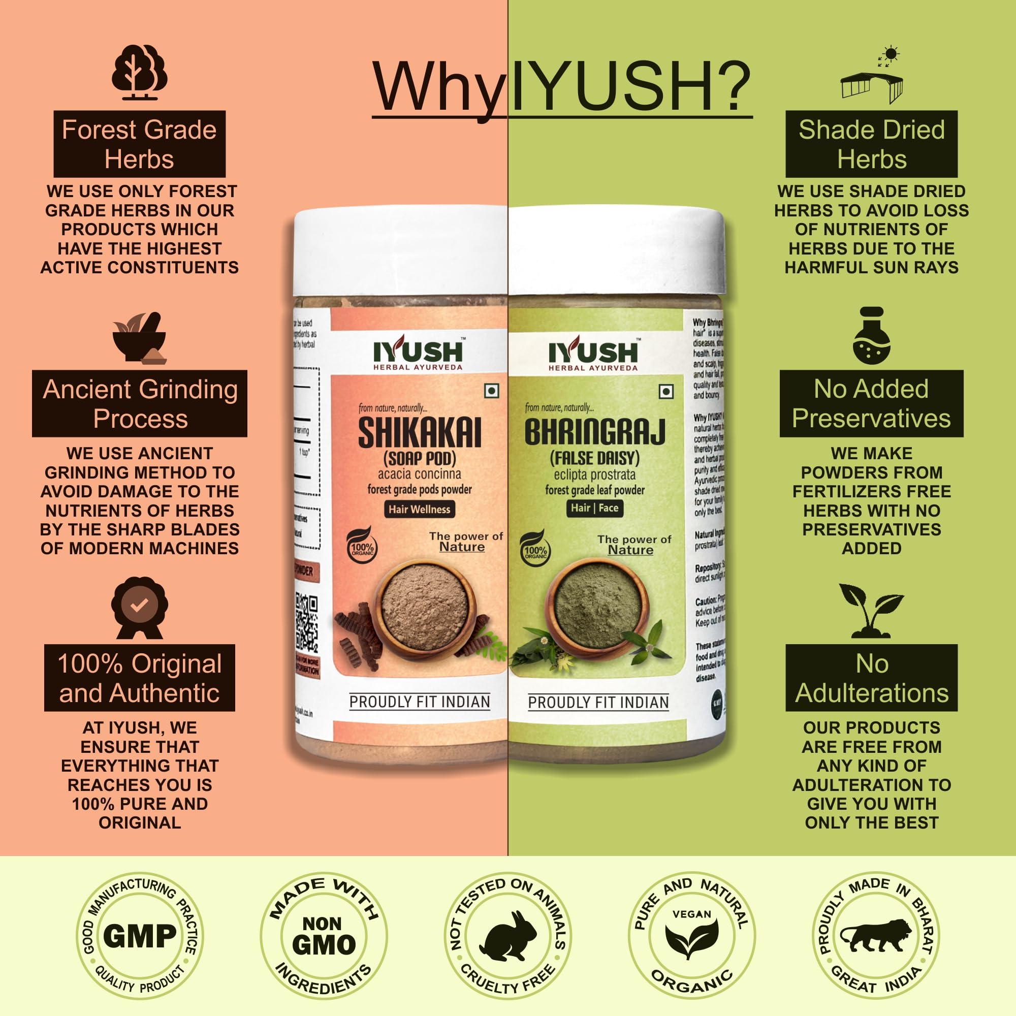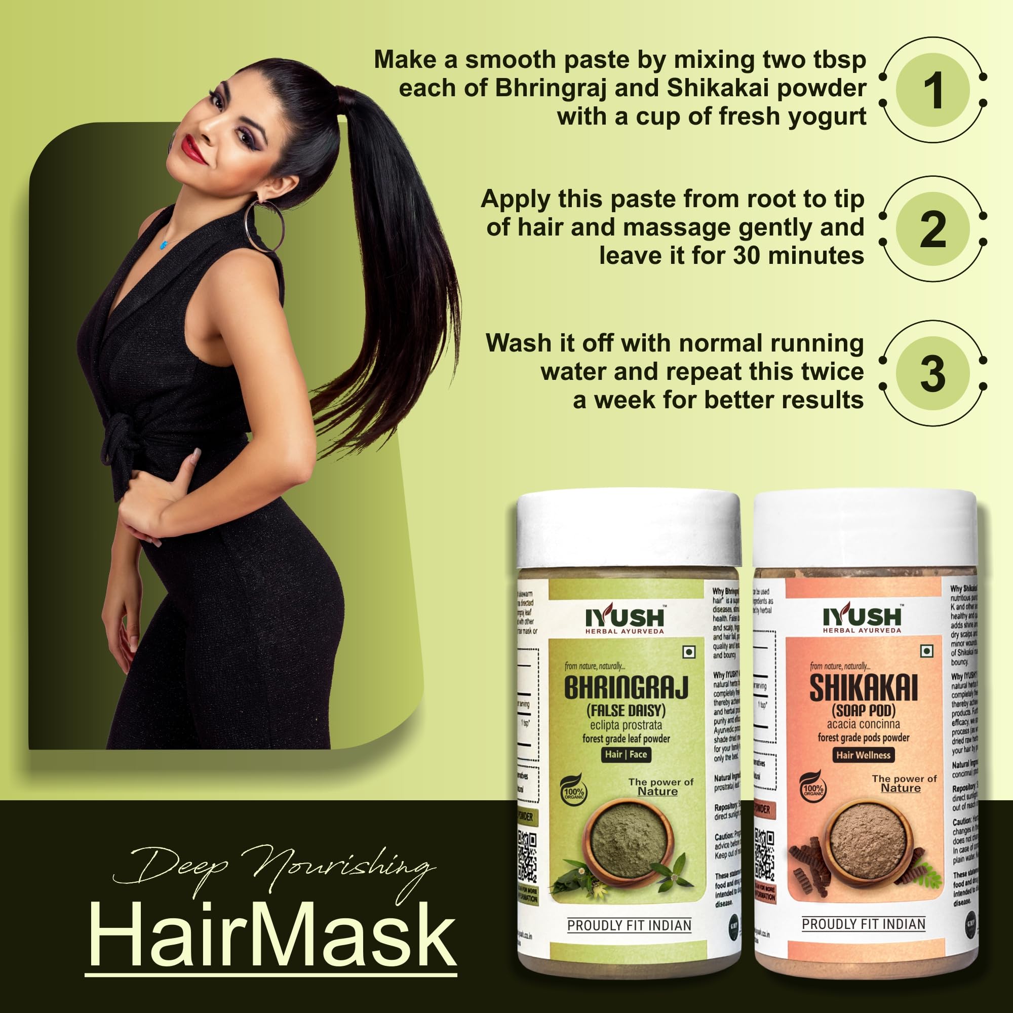 IYUSH Herbal Ayurveda Bhringraj Powder and Shikakai Powder for Hair Growth 200gm | Hair Mask for Dry and Frizzy Hair | Hair Volume Powder | Herbal Hair Wash Powder | Hair Powder | 100gm each