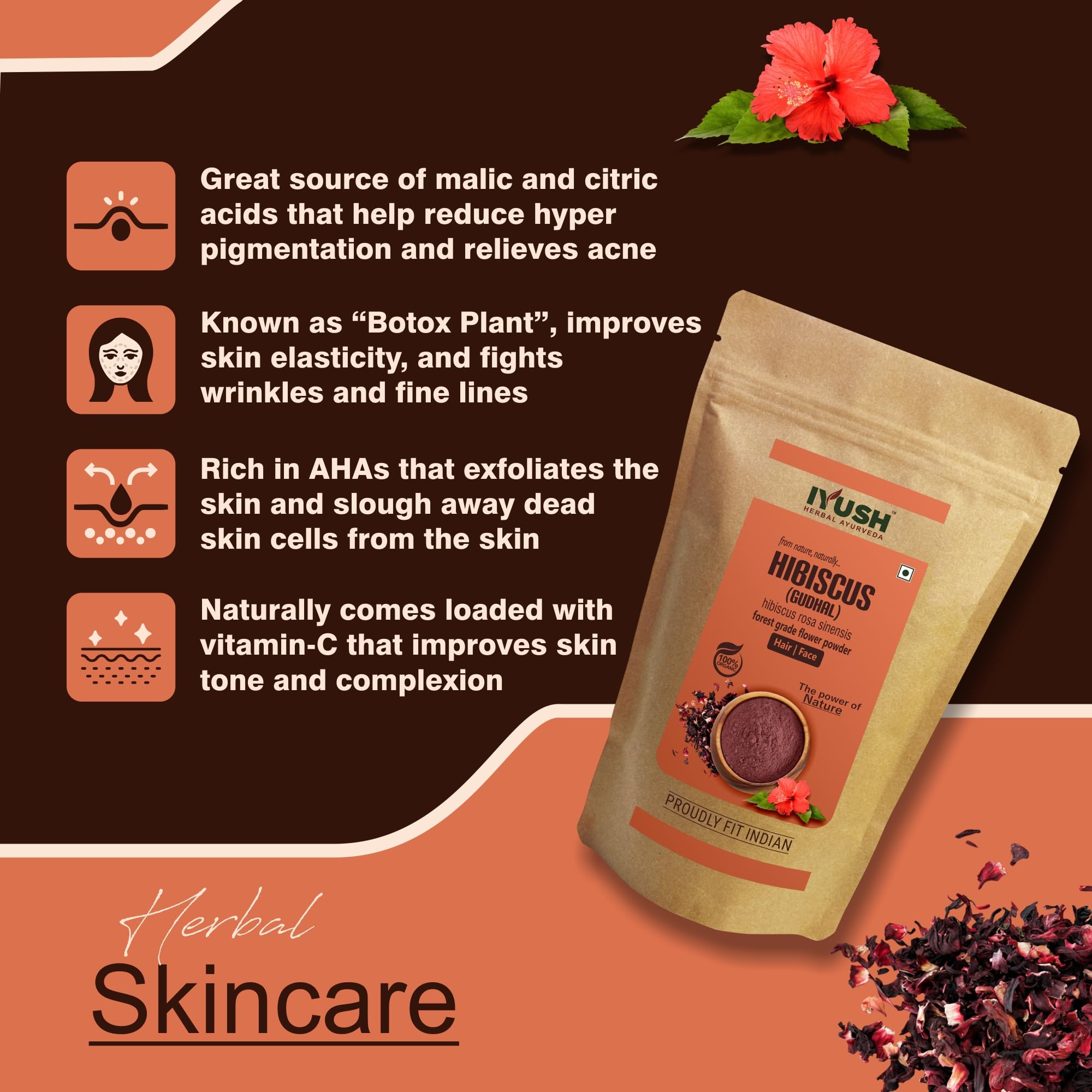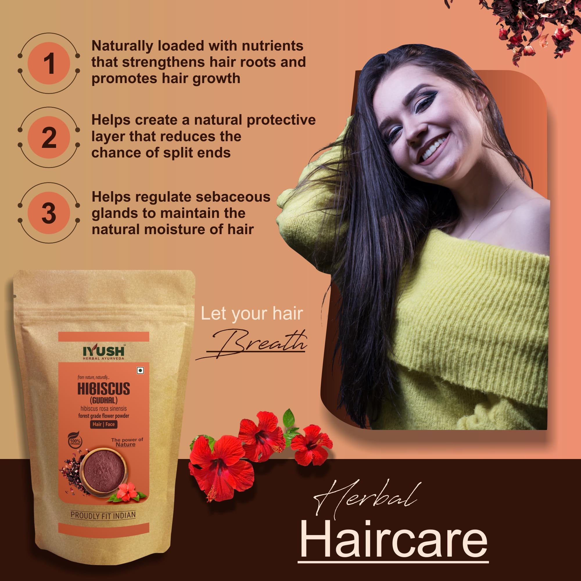 IYUSH Herbal Ayurveda Hibiscus Powder 400gm | Hibiscus Powder for Hair Growth | Hibiscus Powder for Face | Hibiscus Flower Powder | Organic Hibiscus Powder | Hair Mask for Dry and Frizzy Hair |