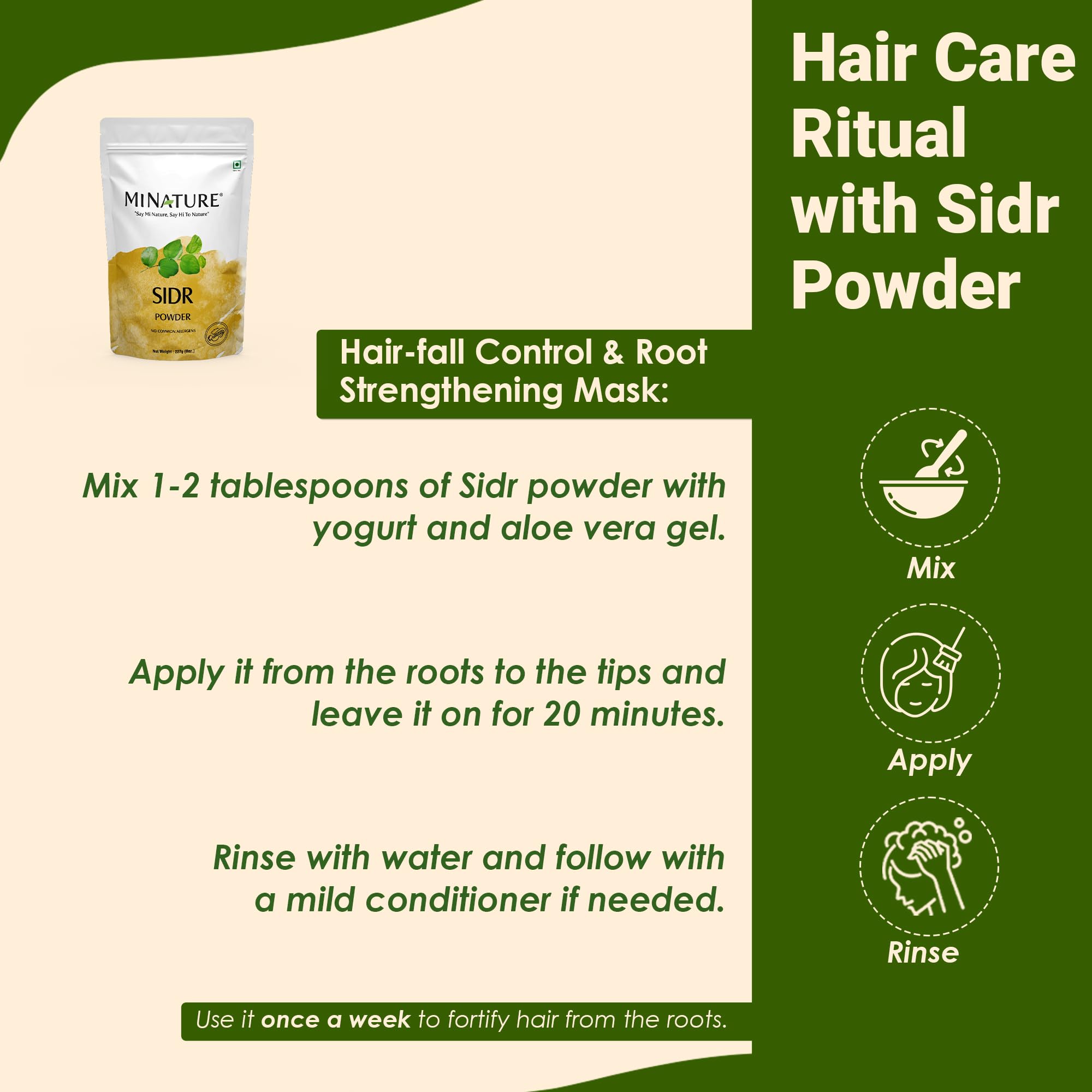 HomeHealth & PersonalHair CareHair MasksMi Nature Fresh Sidr Leaves Powder 100gm (3.5oz) | Natural Deep Cleansing & Conditioning Herb for Hair Care | Traditional Herbal Cleanser |Plant-based Source of Mucilages and Saponins