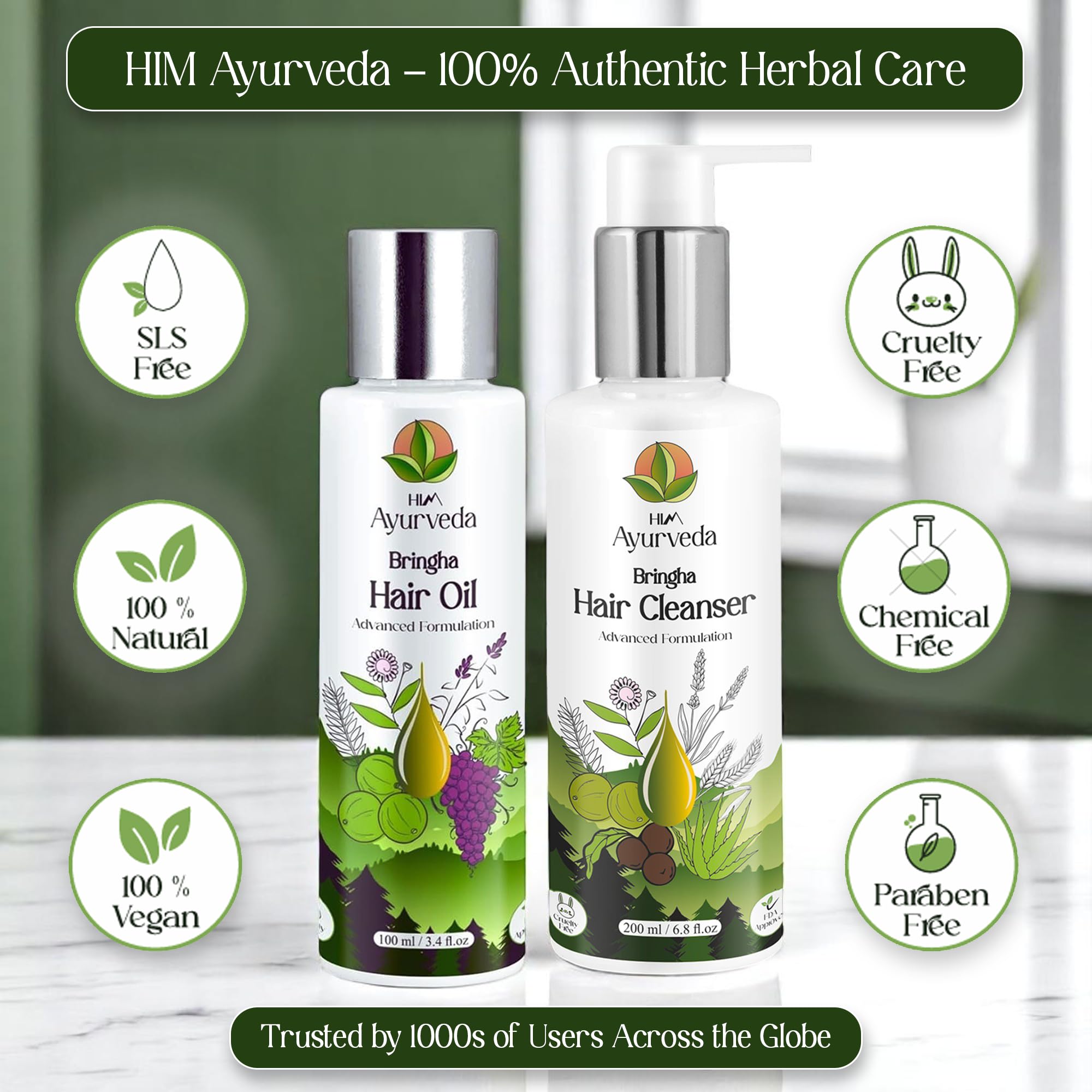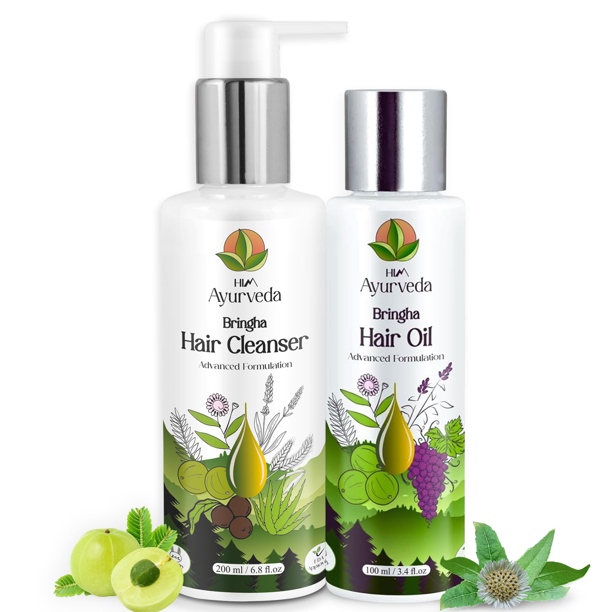 HomeHealth & PersonalHair CareHerbal Hair OilHIM Ayurveda Hair Combo (Bhringraj Oil & Anti Hair Fall Cleanser) | Ayurvedic Formula for Hair Fall Control & Hair Growth | For All Hair Types | Pack of 2