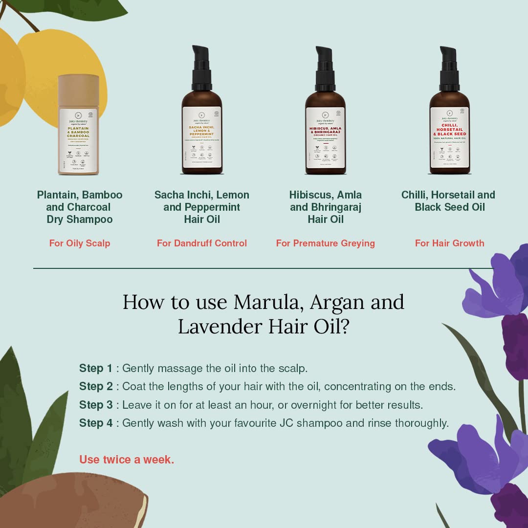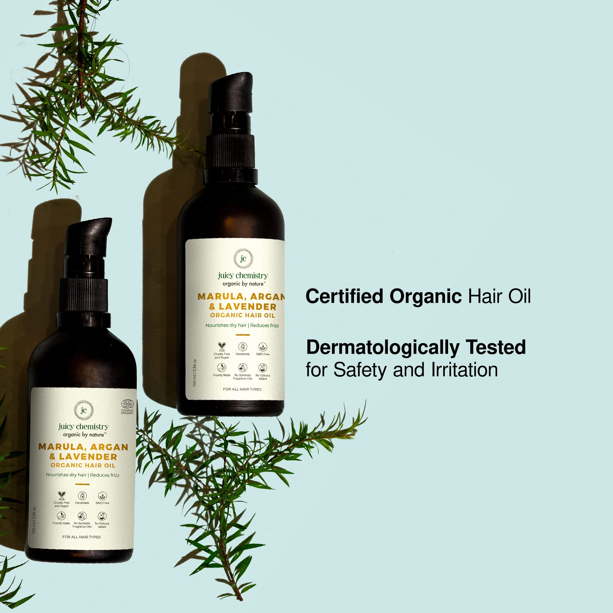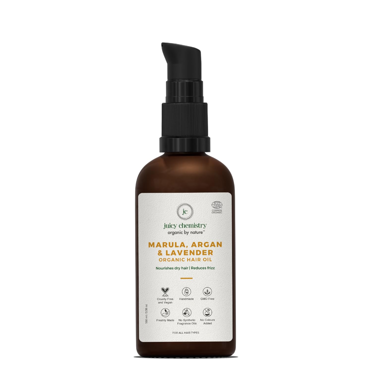 Juicy Chemistry Marula Argan Lavender Hair Oil 100 ml | Organic Hair Oil for Hair Fall Control & Deep Conditioning | Ecocert Certified Organic for Dry & Frizzy Hair | Cruelty-free & 100% Vegan