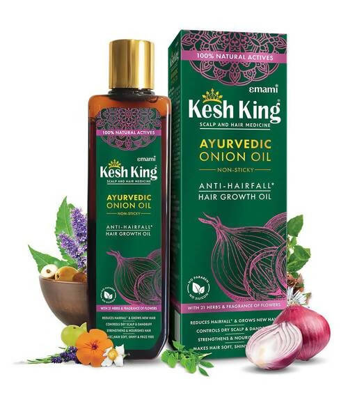 Kesh King Ayurvedic Onion OilKey Ingredients:OnionBhringrajMethiJatamansiDirections of use:Take 3 to 5 ml of oil into your palm and apply to your hair roots using your fingertips.Gently massage from root to tip.Leave it overnight and wash it off with shampoo.Legal Disclaimer: Product images are for illustrative purposes only. Images/packaging/ labels may vary from time to time due to changes made by the manufacturer's manufacturing batch and location. The product descript