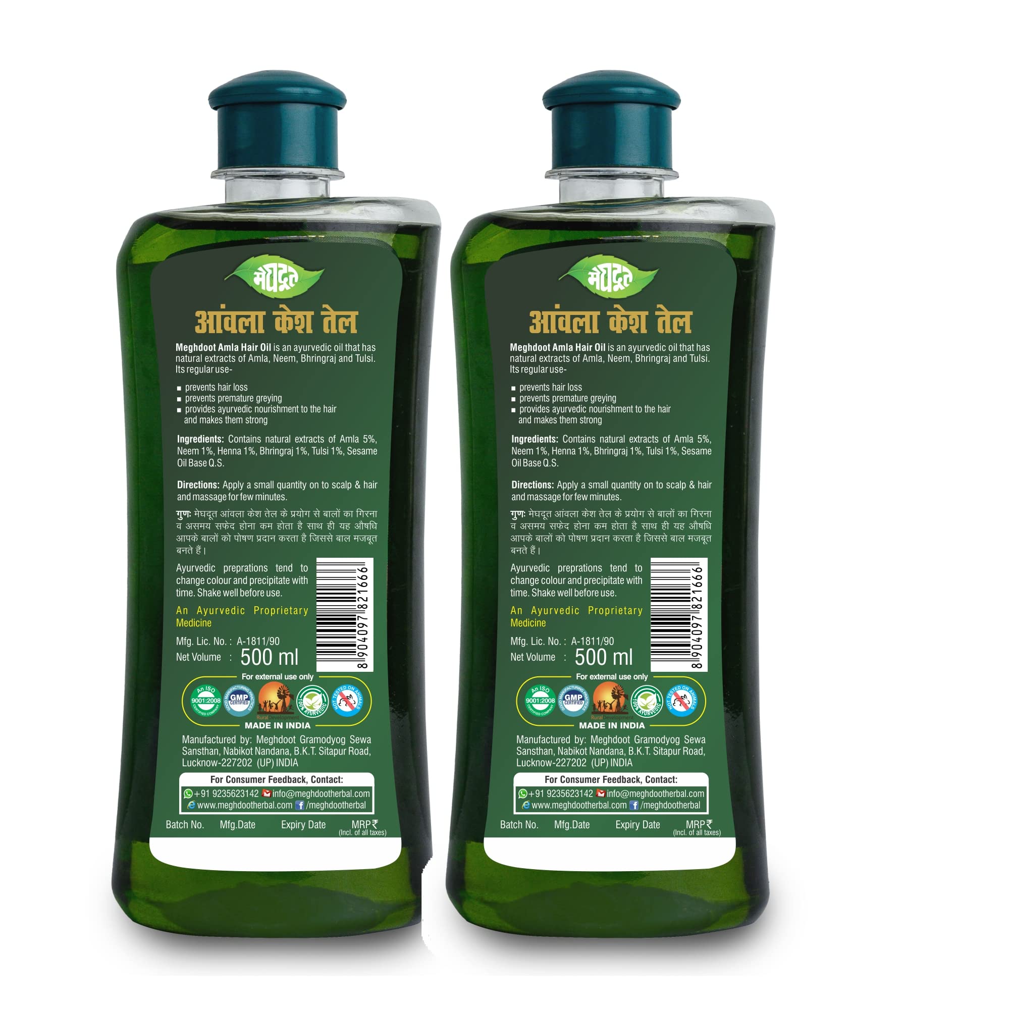 Meghdoot Amla Hair oil is an Ayurvedic oil which provides nourishments to hair and make them strong and long.The Natural ingredients helps prevention of many hair issues. Key Ingredients includes natural extracts of Aloevera leaves neem leaf Mehandi Leafs Bhrami Bhringraj leaves and methi seeds. Apply Small quantity on to the scalp and hair and massage for few minutes. Amla is known to be a power fruit for your hair. Amla helps nourishes your Scalp from within and makes hair strong from root to tip. Amla reduces the hair loss issue. Amla tel as know in india is used in many house and is rich source of many vitamins and minerals. Regular use of amla oil can prevent dandruff and maintain the natural color of hair for long time. Amla stimulates growth and makes hair thick. Brahmi is useful for scalp skin and has anti inflammatory and cooling effects. If you found any issues with our product please reach to us.Meghdoot Amla Hair Oil is a nourishing Ayurvedic oil enriched with natural extracts of amla aloe vera neem mehandi brahmi bhringraj and methi. This traditional formulation is designed to help support hair strength reduce breakage and promote the appearance of longer thicker hair. Suitable for all hair types the oil can be used regularly to help maintain a healthy scalp reduce dryness and improve overall hair texture. Free from harmful chemicals and synthetic additives it offers a natural way to care for your hair using time-tested Ayurvedic ingredients.