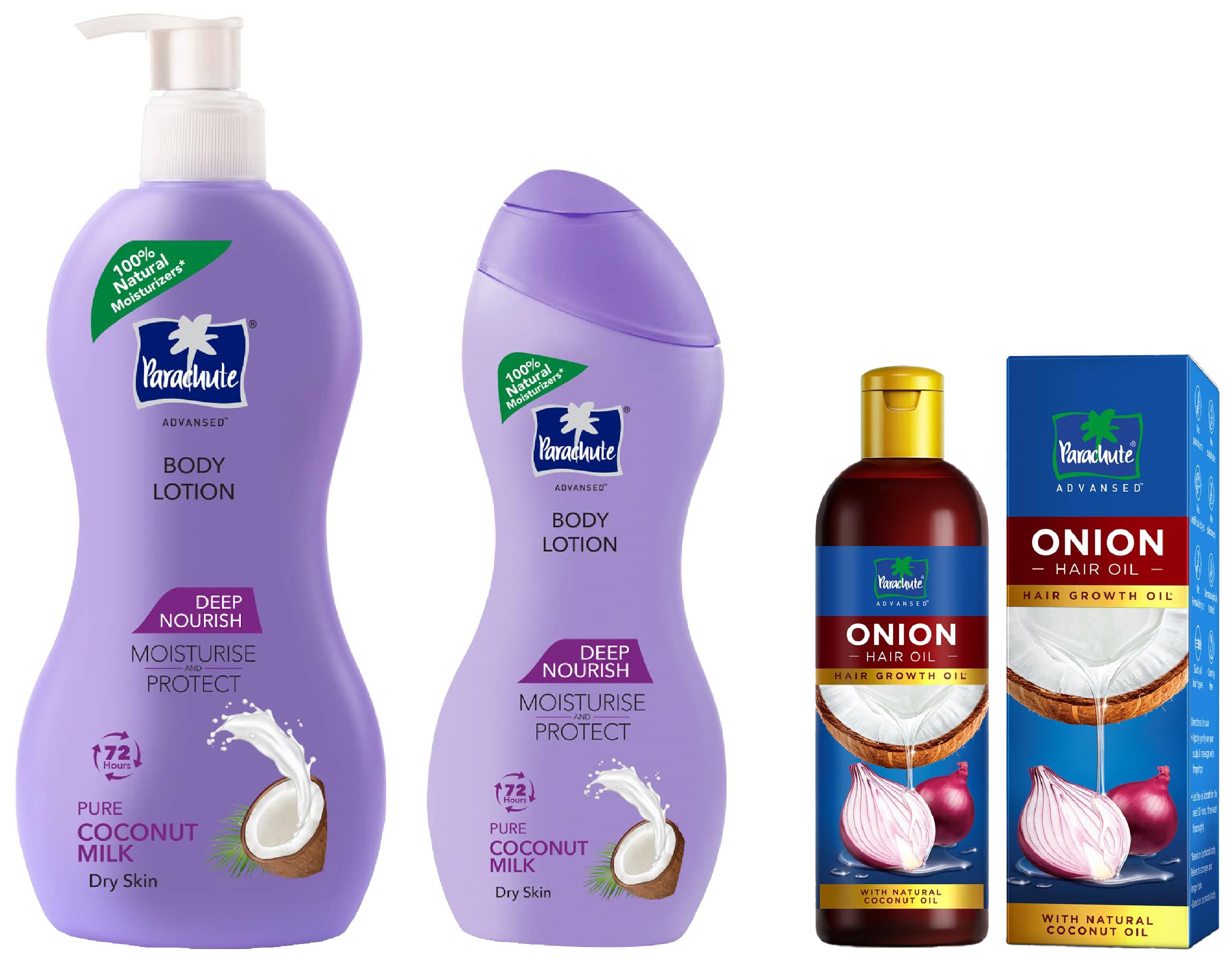 Parachute Advansed Deep Nourish Body Lotion for Women & Men & Parachute Advansed Onion Hair Oil for Hair Growth and Hair Fall Control with Natural Coconut Oil & Vitamin E - 200ml
