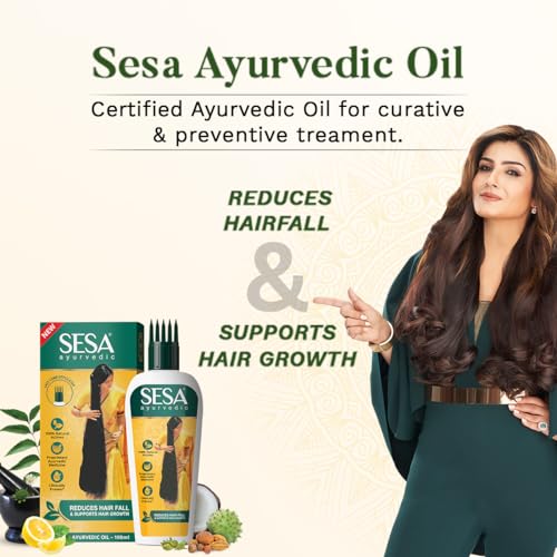 HomeHealth & PersonalHair CareHerbal Hair OilSESA Ayurvedic Hair Oil 100ml With Bhringraj 18 Rare Herbs With 5 Nourishing Oil For Hair Growth Help Control Hair Fall & Strengthen Roots with Easy Hair Oil Applicator For Women and Men