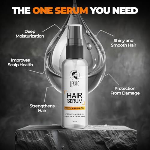 Beardo Hair Serum 50ml for Instant Shine & Anti-frizz with Argan Oil, Made for Men's Hair, Super Light-weight | Provides shine, smoothness and damage protection | Luxurious Shine, Frizz-Free Hair Serum for Men