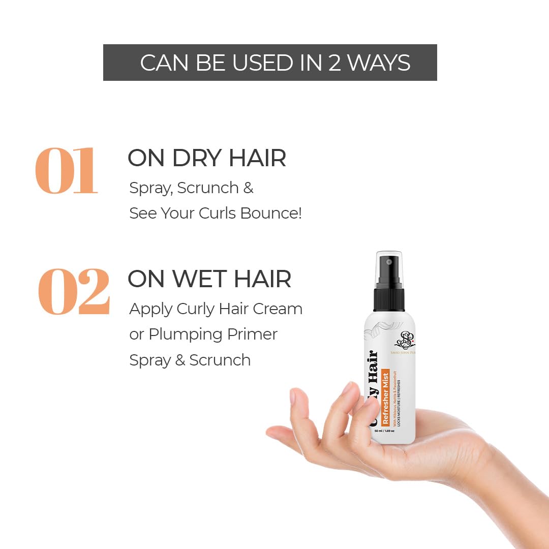 Curly Hair Refresher Mist | Wavy and Curly hair products | Travel Friendly Minis | Hair Spray for Curly wavy hair | Hydration Nourishment and Protection | Enriched with Passionfruit Hibiscus Nettle | Magic hair care for curls | By Bollywood Hair Stylist S