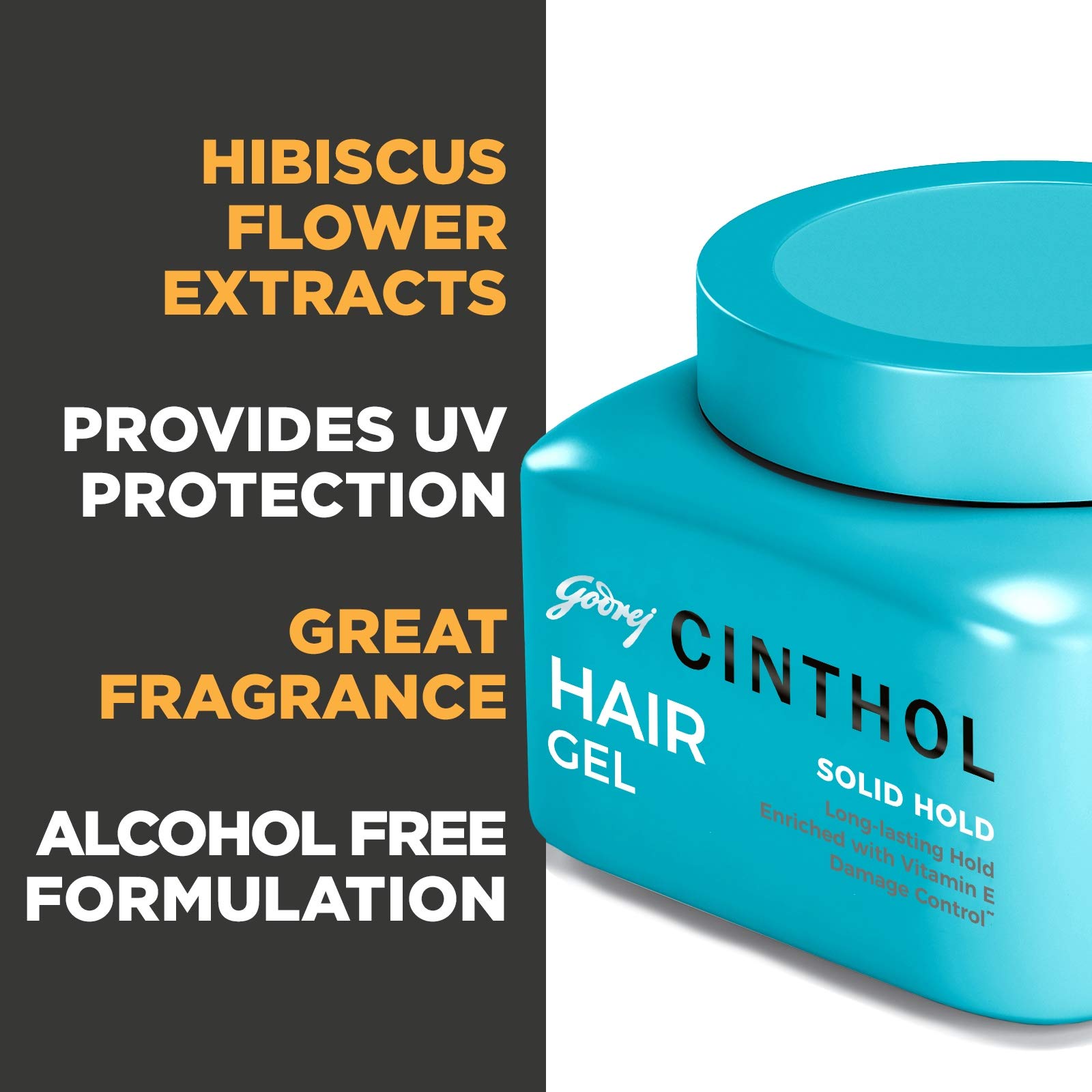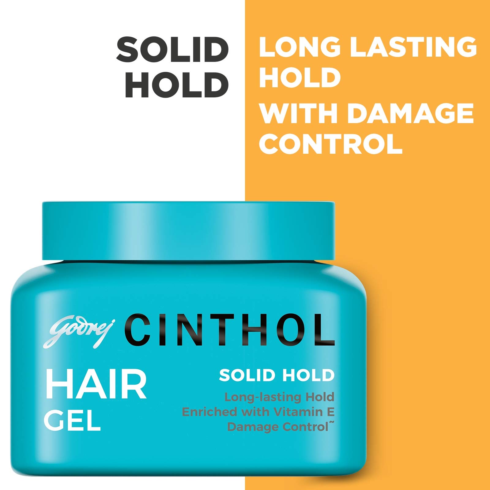 Cinthol Hair Styling Gel - Solid Hold a styling solution that keeps up with your active lifestyle. Vitamin E helps in strengthening hair and keeps it looking healthy. An alcohol-free formula that provides UV protection and effective damage control. Now style every day without the fear of hair damage and let the pleasant fragrance leave you feeling and looking great. Suitable for men with all hair types - frizzy hair curly hair and straight hair. About the Brand: Cinthol is more than just a personal care brand. Itâs a philosophy best summarized in the three words alive is awesome. Itâs about giving people incredible experiences that make living worthwhile and every Cinthol product is one such experience in itself. Though Cinthol is a brand with a legacy it has continued to reinvent itself with the changing times. In the last two decades the market dynamics have shifted with it Cinthol too has upgraded its soap formulation product mix and packaging design to suit the needs of the new generation consumers. It has introduced a completely new range of soaps body talc's deos and shower gels in novel variants with striking colourful packaging. Itâs a brand that todayâs youth can relate to one thatâs inspiring courageous and simply awesome.