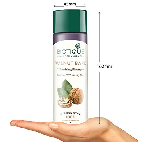 Biotique Walnut Volume and Bounce Shampoo is a nourishing shampoo specially formulated to cleanse and revive your hair giving it a fuller thicker and lifted appearance. Its pH-balanced formula effectively prevents hair loss and keeps all hair fall troubles at bay. From root to tip it stimulates your hair leaving your scalp toned exhilarated and free from dryness and irritation. Walnut extracts and the potent combination of Bhringraj and amla work harmoniously to enhance scalp nutrition stimulate healthy hair growth prevent hair loss and invigorate the scalp. This volumizing shampoo effectively combats hair fall problems and treats them at their root cause. Boosting scalp nutrition and strengthening the hair from within promotes healthier more resilient strands. The Walnut Shampoo is organically pure. Crafted with 100% natural botanical extracts it is free from harmful chemicals. This shampoo for fine hair texture has been dermatologically tested and is suitable for those with fine and thin hair offering a safe and gentle hair care solution. For best results apply this volumizing shampoo to damp hair. Work the lather from the scalp to the ends ensuring thorough coverage. Rinse your hair thoroughly with water removing all traces of the shampoo. Take caution to avoid contact with the eyes. .