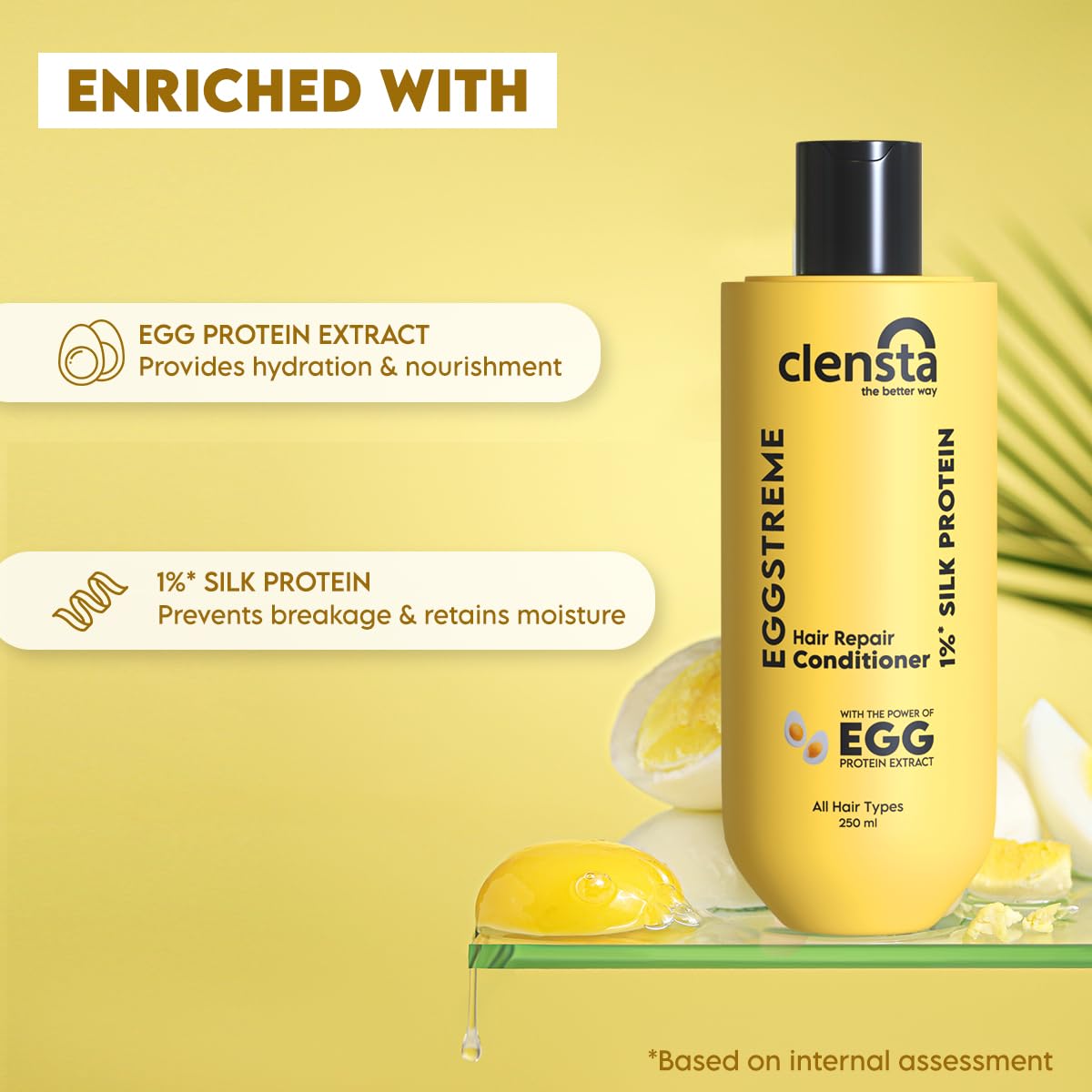 Clensta Eggstreme Hair Fresh Conditioner With Biotin Egg Protein & Hydrolyzed Silk Protein For Deep Nourishment Frizzy Hair Reduces Hair Breakage Sulphate & Paraben Free Men & Women 250Ml1 Count