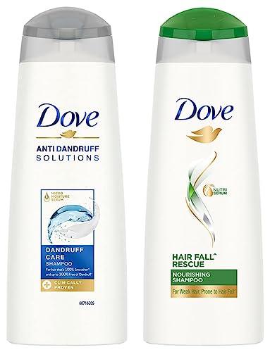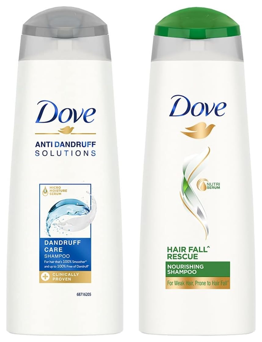 Dove Dandruff Care Shampoo 180 mlAt Dove we are dedicated to providing superior nourishment solutions for hair. The Dove Anti-Dandruff solutions range has been specially designed to give your hair the superior care it needs. It has been carefully created to be clinically effective against dandruff while still being gentle on your hair so that you can use it every day. Worried that dandruff is also leaving your hair dry and rough? When white flakes appear we want to clear them out but also solve for the dryness and roughness of hair. Now say 'bye' to dandruff flakes as well as the dry & rough hair with Doveâs Dandruff Care shampoo. It removes dandruff from your scalp without leaving your hair dry & rough. Dove Dandruff Care shampoo nourishes your hair from roots up giving you hair thatâs 100% smoother* and up to 100% free of dandruff**. Its ZPTO formula is clinically proven to target dandruff at its source and start clearing flakes from the first wash itself. And the Micro Moisture Serum effectively moisturizes hair and leaves them smoother*. For best results use Dove Dandruff Care shampoo along with Dove Dandruff Care conditioner together. No visible flakes with regular product use effect may vary with person.Dove Hair fall Rescue Shampoo 180 mlWe love the feeling of beautiful hair â but daily hair damage can leave your hair prone to breakage. Let hair fall* be an issue of the past! Use the Hair Fall* Rescue Shampoo from Dove regularly to get thick and luscious looking hair as the Dove shampoo works to reduce hair fall by up to 98%*. Specially formulated for better hair fall* control Dove Nutritive Solutions Hair Fall* Rescue Shampoo strengthens and nourishes fragile hair from roots up. Perfect as a daily hair fall* solution this unique formula fortifies strands to reduce hair fall*. Enriched with Nutrilock Actives our best shampoo for hair fall* immediately helps seal cuticles and strengthens strands to help minimize hair fall due to breakages leaving them looking fuller**. Healthier looking hair means lesser breakage and reduced hair fall*! Buy Dove Hair Fall Rescue Shampoo and forget your hair fall* troubles. Leaves your hair feeling strong and beautiful day after day. Say no to hair fall* worries and do more in life. Dove Hair Fall* Rescue lets you be stronger bolder and closer every day.*Hair fall refers to hair breakage**Hairfall due to breakage Based on a lab test with Dove Hair Fall Rescue System vs non-conditioning shampoo.