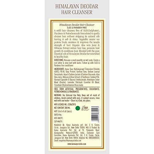Size:200 ML|Design: Shampoo A mild hair cleanser free of SLES (sulphates) parabens and petrochemicals formulated to gently cleanse hair without stripping its natural oils leaving it soft and shiny. Vegetable source soy protein binds moisture and improves the tensile strength of hair. Organic aloe vera juice and hibiscus extract conditions hair. Blended with pure essential oils of Himalayan deodar for nourished and healthy hair.