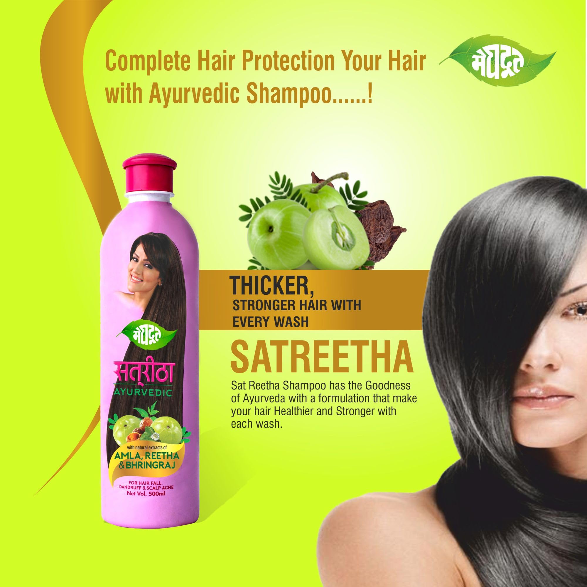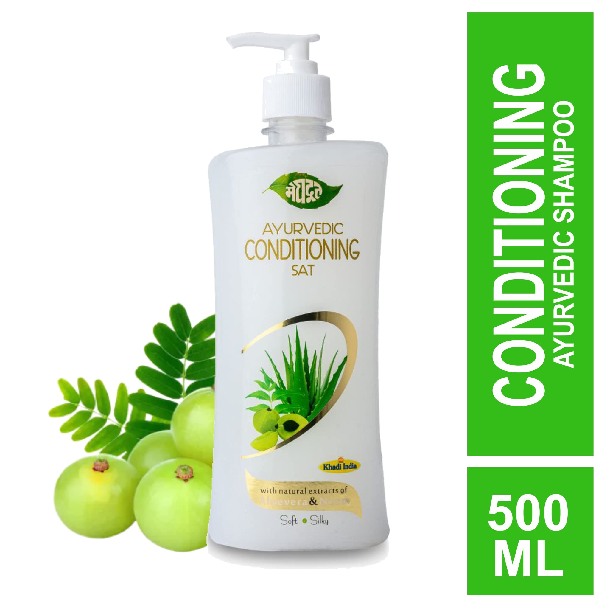 Khadi Meghdoot Combo Pack of Satreetha Shampoo 400ml with Amla Reetha & Bhringraj + Hair Conditioner 500ml with Tulsi & Neem for Hair Fall Control &