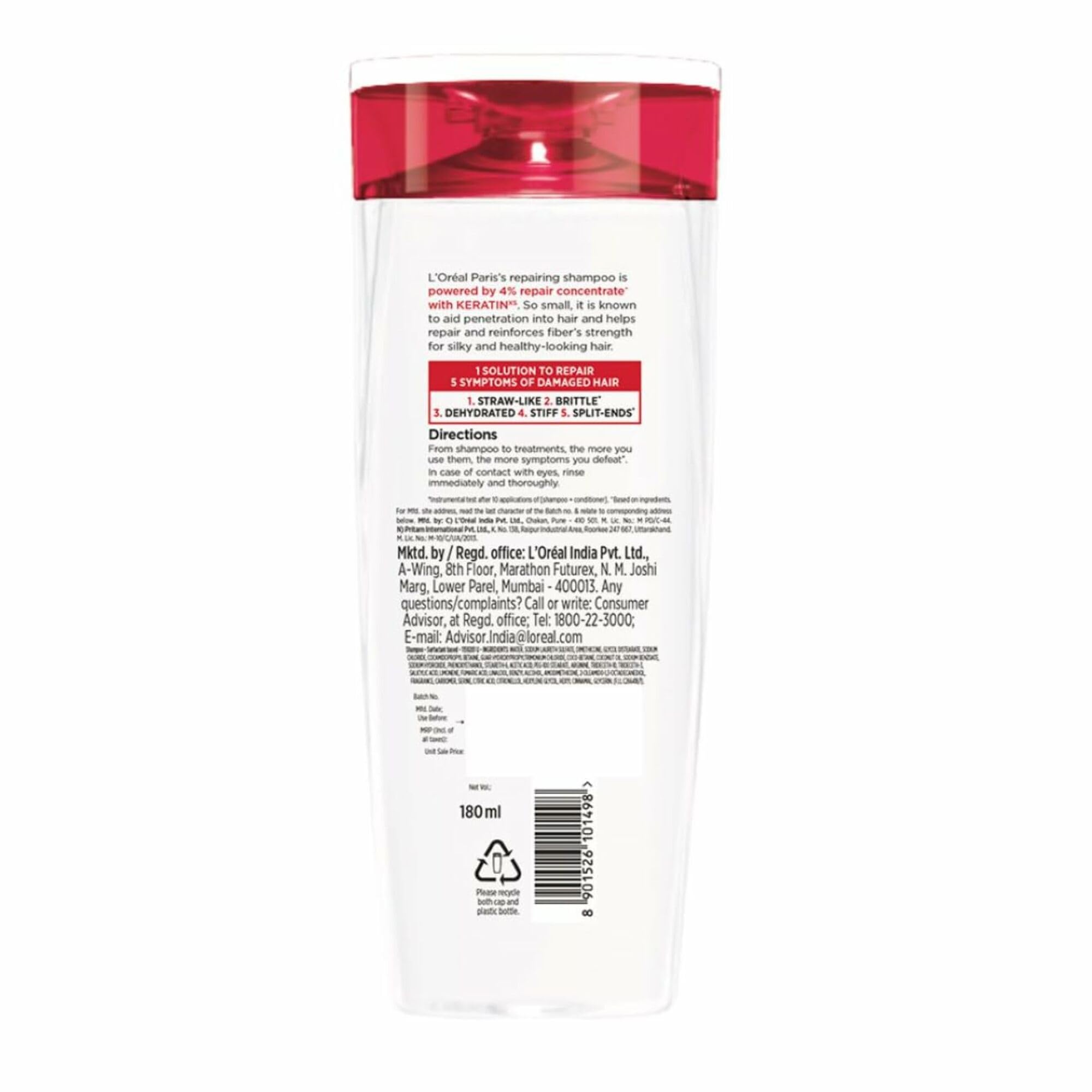 Revive your damaged hair today! L'Oreal Paris Total Repair 5 range helps fight against the five visible signs of damaged hair: hair fall dryness roughness dullness and split ends. The Pro-Keratin conditioning formula reinforces each hair fibre to give strength and resilience to wear and tear; whilst the Ceramide acts as a replica to the hair's natural cement restoring smoothness and leaving it soft and healthy looking once again. Give new life to your locks with the Total Repair 5 range: Shampoo for a deep clean; Conditioner to restore moisture; and Serum to nourish and protect! All you need for damage-free beautiful hair!