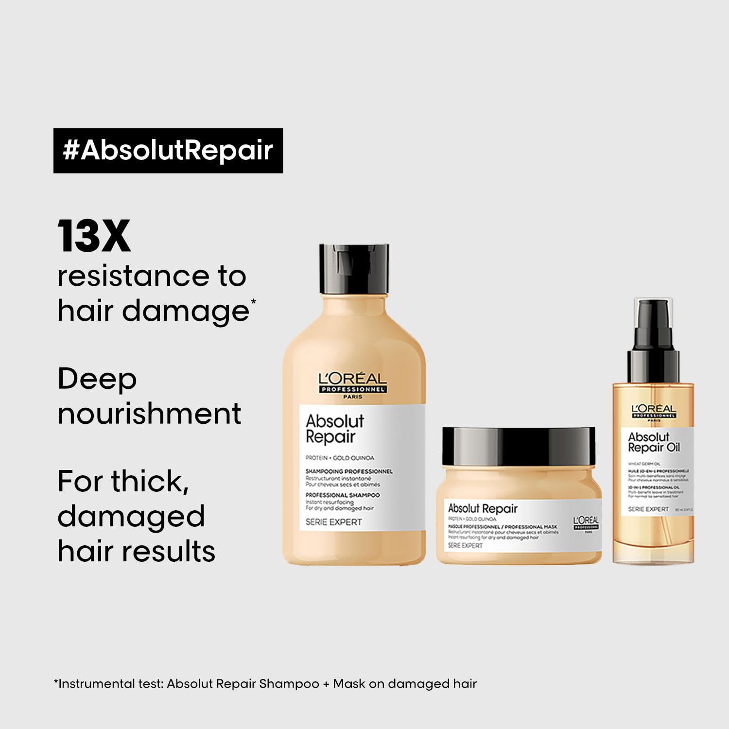 L'Oreal Professionnel Absolut Repair Shampoo Mask & Serum 3-Step Combo for Dry & Damaged Hair (300ml+250gms+125ml) with Absolut Repair & Vitamino Travel-Sizes 75ml