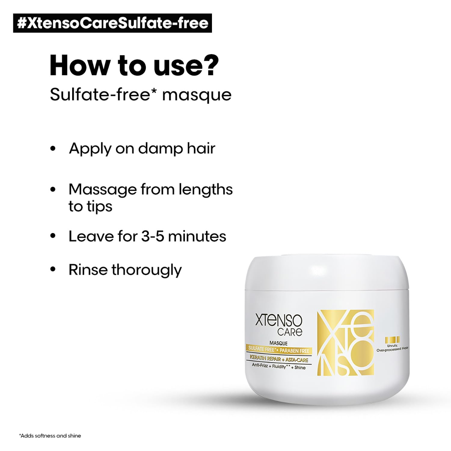 L'Oreal Professionnel Xtenso Care Sulfate-free* Shampoo 250ml and Hair Masque 200ml Combo for All Hair Types (Pack of 2) with Absolut Repair Travel-Size Mask 75ml
