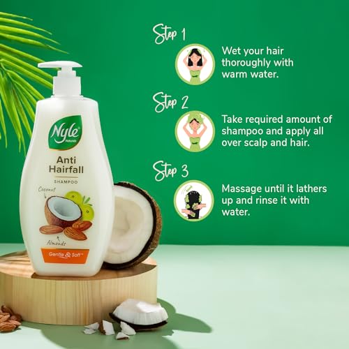 Every drop of Nyle Naturals Anti hairfall shampoo is Paraben free & contains goodness of natural extracts of Almonds Green gram sprouts and a blend of natural herbs. Almonds help make the hair strong shiny soft to touch and shiny. It strengthens your hair and protects from hairfall due to breakage. Sprouts contain vitamin C which is considered to promote hair growth. It helps you enjoy strong & healthy hair#. #Strengthens hair by reducing hair breakage. Based on lab results under test conditions.