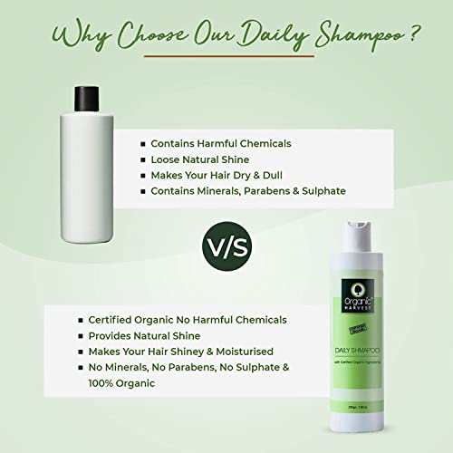 Organic Harvest Daily Shampoo is a certified organic product made with plant derived ingredients. It can be used daily for cleansing the scalp gently and maintaining the moisture balance. This shampoo improves the hair texture and protect hairs natural keratin thus keeping the scalp and hair healthy.