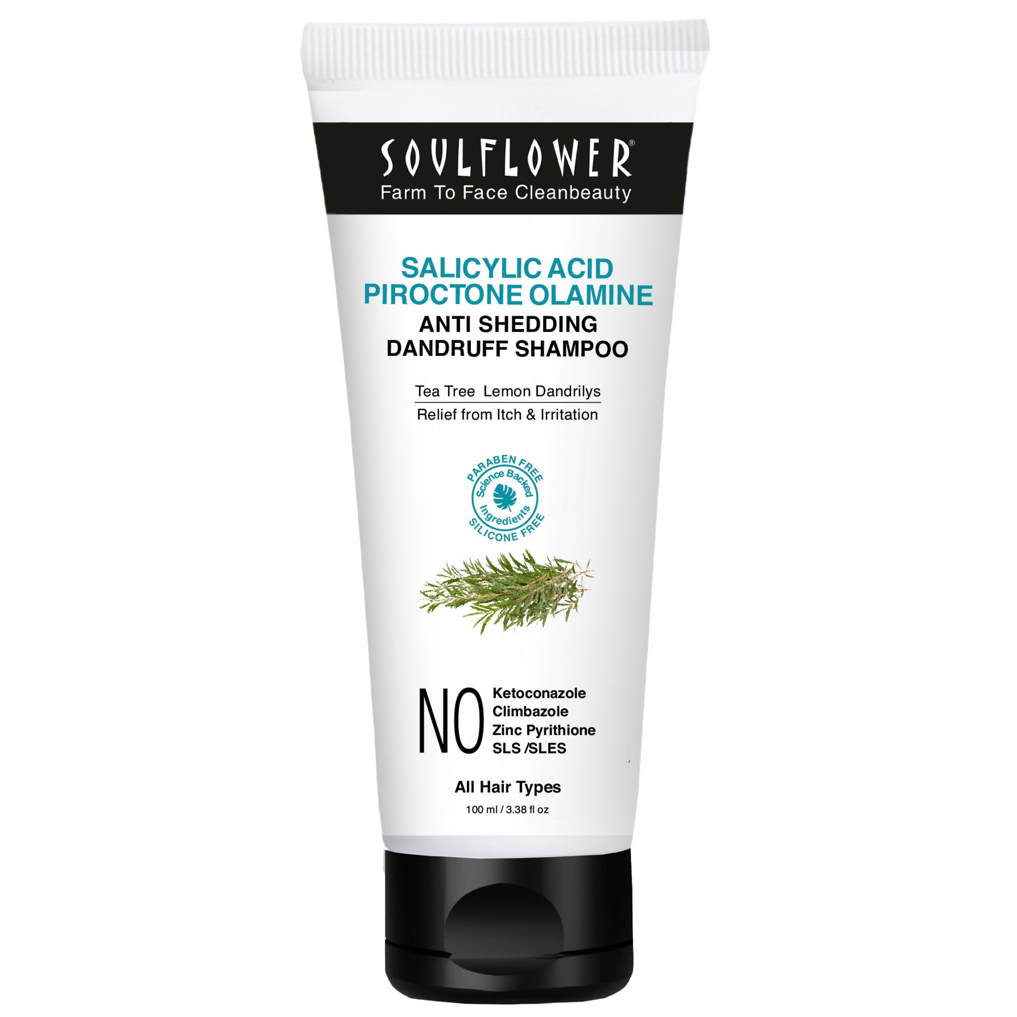 Soulflower Anti Dandruff Shampoo with Piroctone Olamine 1% Salicylic Acid Dandrilys 86% Dandruff Reduction in 4 washes* for Hair Growth Hair Fall Control Controls Itchy scalp Men & Women 100ml