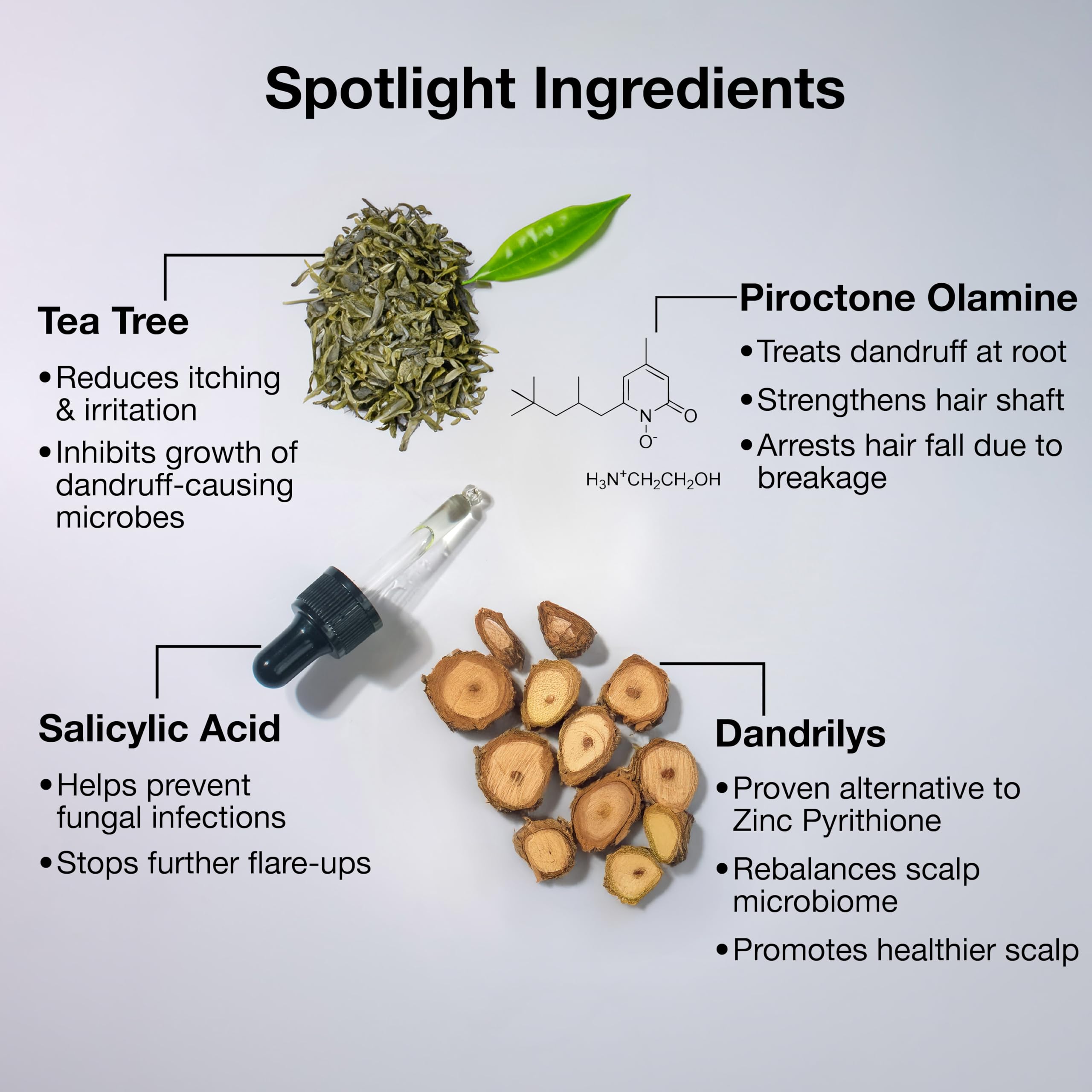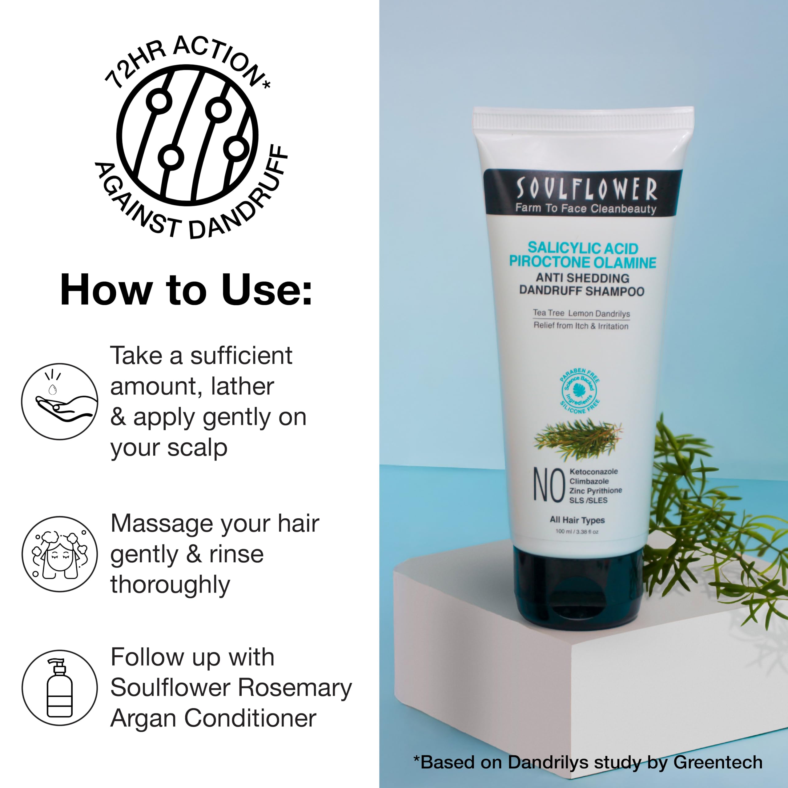 HomeHealth & PersonalHair CareOrganic Shampoos & ConditionersSoulflower Anti Dandruff Shampoo with Piroctone Olamine 1% Salicylic Acid Dandrilys 86% Dandruff Reduction in 4 washes* for Hair Growth Hair Fall Control Controls Itchy scalp Men & Women 100ml