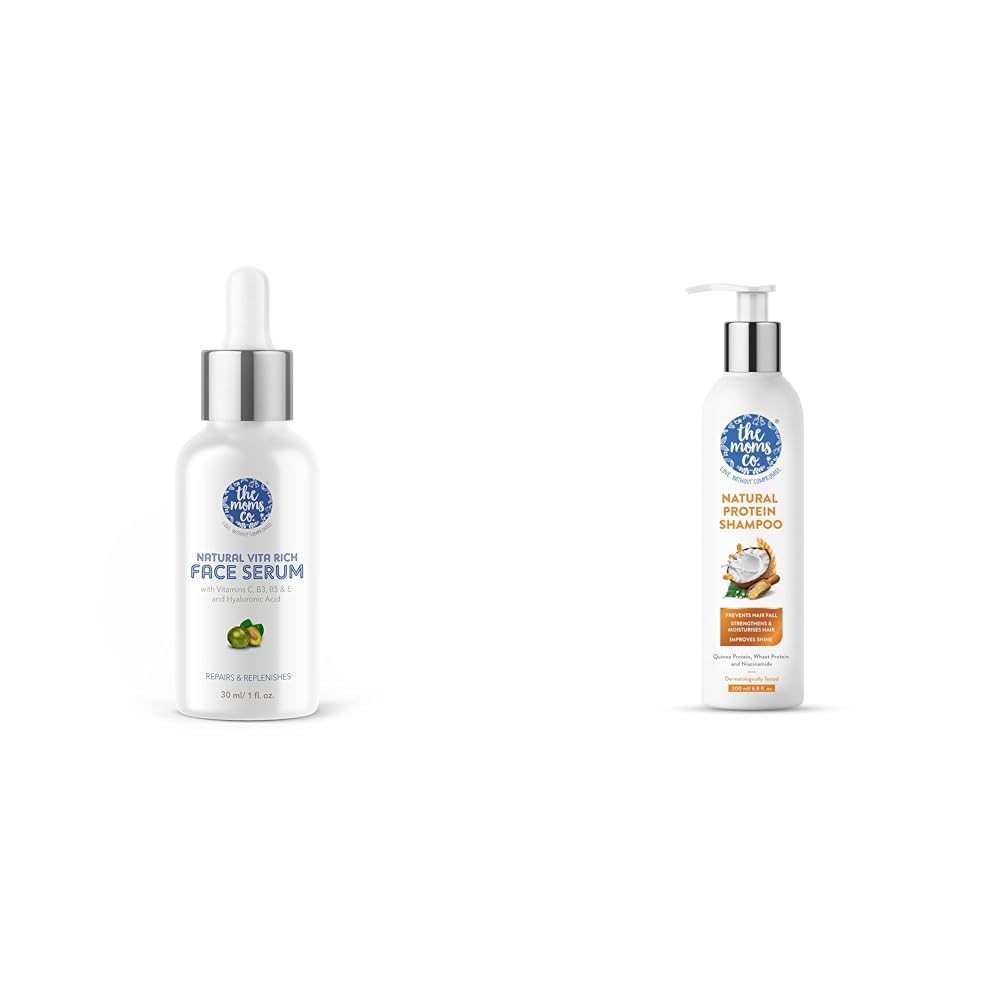 The Moms Co. Natural Vita Rich Face Serum (30 ml). Natural Protein Hair Strengthening Shampoo for Women & Men-200 ml