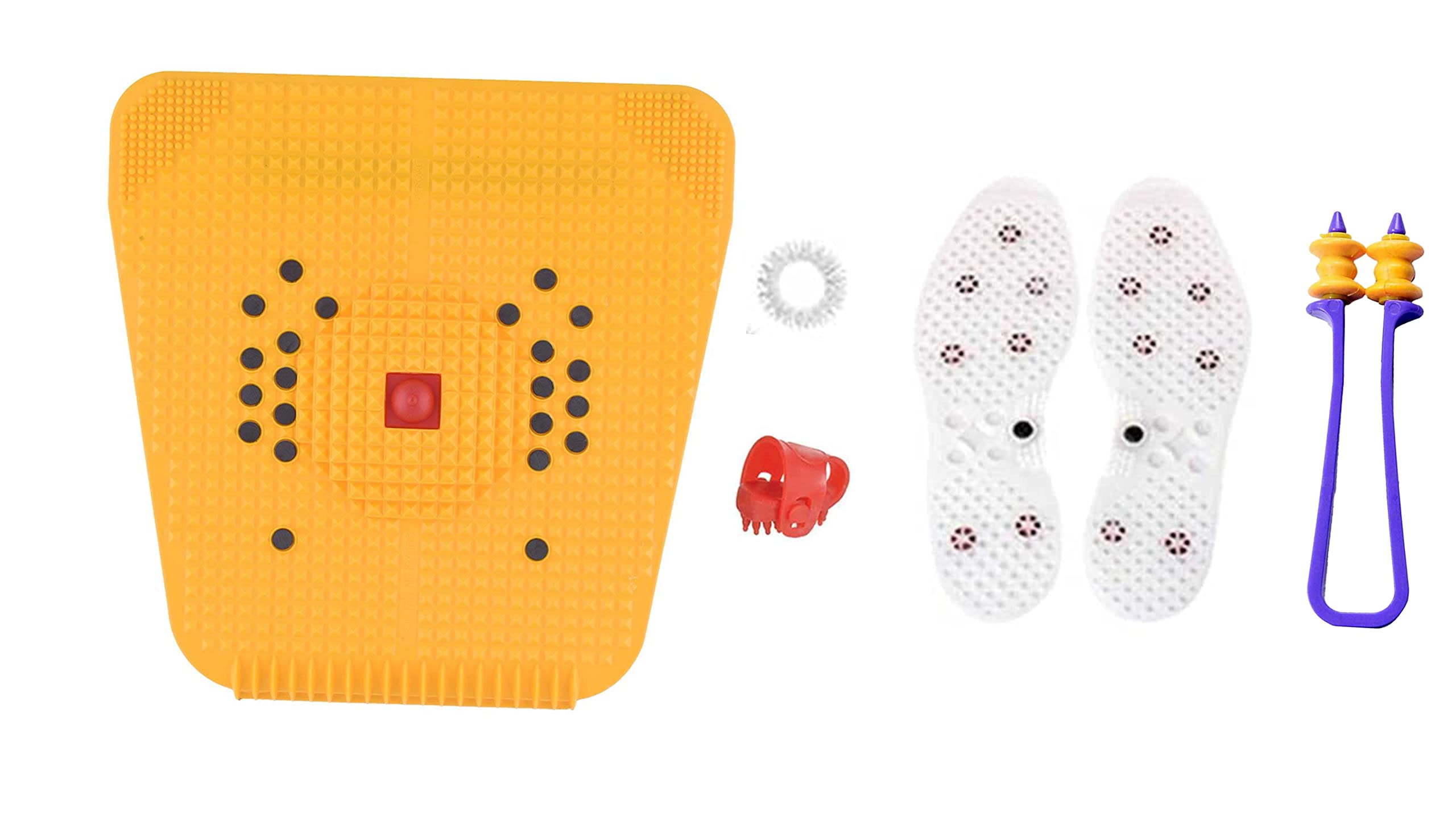 Acupressure / Acupuncture Magnetic Power Foot / Feet Mat Reflexology Massager / Massage Board. Reflexology massage mat. Promotes mental peace and healthy body. Magnetic massage mat focuses on reflex points on the soles. Feels more energetic reduce pain and relieve stress. Acupressure uses reflexology to cure all types of health problems just by walking. The New Acupressure Magnetic Power Mat acts as a 'holistic healer' and focuses on the 'reflex points' on the soles of the feet. It provides comfort and relaxation by inducing pressure that massages your foot when you walk on it. These mats promote mental peace which in turn results in a healthy body. Our Power Mats are fitted with strong magnets which help in improving blood circulation. Human body is wired such that 7000 nerves send signals to the brain about various senses faced by the body. These senses can be pain or stress. While there is no proven scientific evidence it is believed that the brain responds by to these messages (when the right amount of pressure is applied on these reflex points) by producing endorphins. Endorphins are the body's natural way to relieve pain and fight stress. Foot Reflexology Massages utilize the same principles of Acupressure where the massage therapist uses their thumb to put the right amount of pressure on the acupressure points on the foot to help you feel more energetic reduce pain and relieve stress.