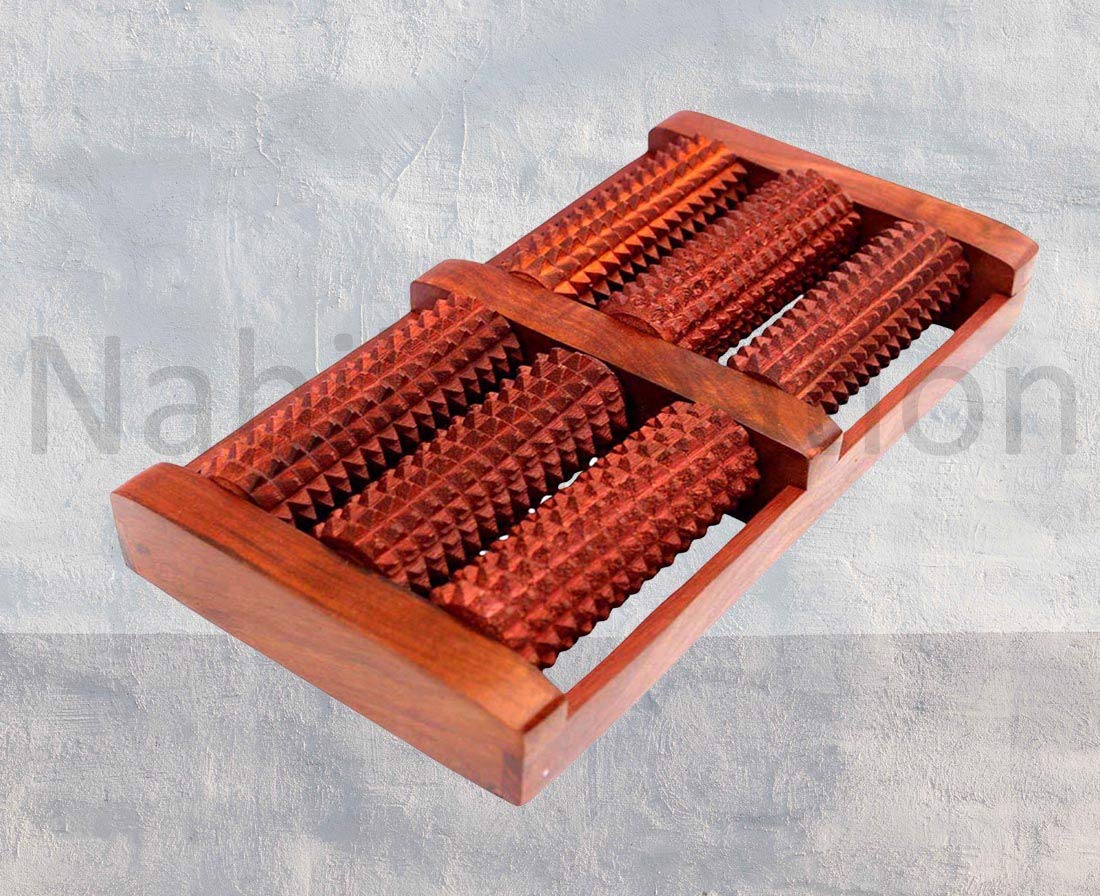 Made from very high quality wood. This product is mainly used for full body massage and helps in maintaining blood pressure. brings you the traditional art of Indian artists by offering you the most beautiful wooden handycraft products made by the rural artists of India Authentic design!! Not a replice!! All are made by Rural Artists of India!! So buy them & promote India. Set of Wooden 6 Roller Foot/Feet Massager for Body Stress Acupressure Feet Care(With Best Quality Surkh Roller) + feet massager + finger cum face massager