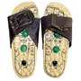 The slippers is made up of wooden material. Clean with dry cloth. It is available in brown colour. It is worn for good health