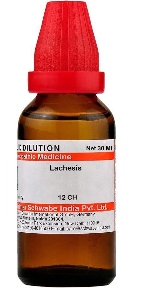 Dr Willmar Schwabe India Lachesis Dilution is formulated to provide relief in climacteric troubles skin complaints with easy suppuration purpura septic states haemorrhages diphtheria and delirious state of mind.