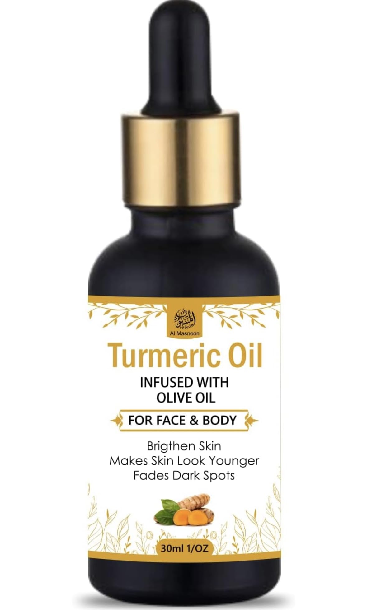 Reveal your natural glow with our 100% Natural Turmeric Oil for Face & Body 30ml infused with the goodness of pure Olive Oil. This powerful blend harnesses the ancient healing properties of turmeric known for its skin-brightening anti-inflammatory and antibacterial benefits combined with deeply nourishing olive oil that hydrates and soothes the skin. Crafted with care this lightweight non-greasy oil is perfect for daily use on all skin types. Whether you're looking to brighten dull skin reduce dark spots or achieve a more even skin tone this natural elixir works gently yet effectively to restore your skin's youthful radiance. It also supports clearer skin by combating breakouts and calming irritation.