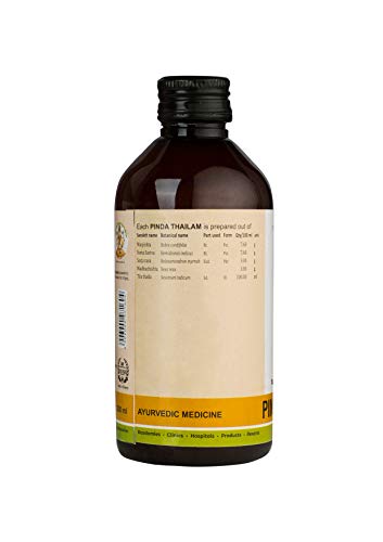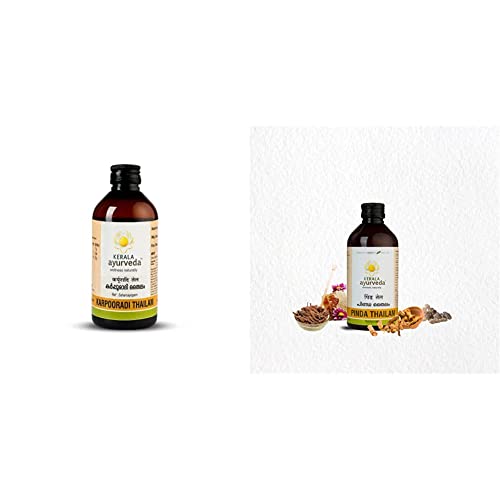 Kerala Ayurveda Karpooradi Thailam - 200 mlIngredients: Karpooradi thailam (qty/100 ml) karpoora (cinnamomum camphora) - 7.5 G keram (coconut oil) - 100 ml ajmoda (trachyspermum ammi) - 37.5 G.Kerala Ayurveda Pinda Thailam 200 MlManjishta Rubia cordifolia Rt. Pst. 7.60 g Sveta Sariva Hemidesmis indicus Rt. Pst. 7.60 g Sarja rasa Balasamondron myrrah Exd. Pdr 3.00 g Madhuchishta Bees wax 3.80 g Tila thaila Sesamum indicum Sd. Ol. 100.00 ml
