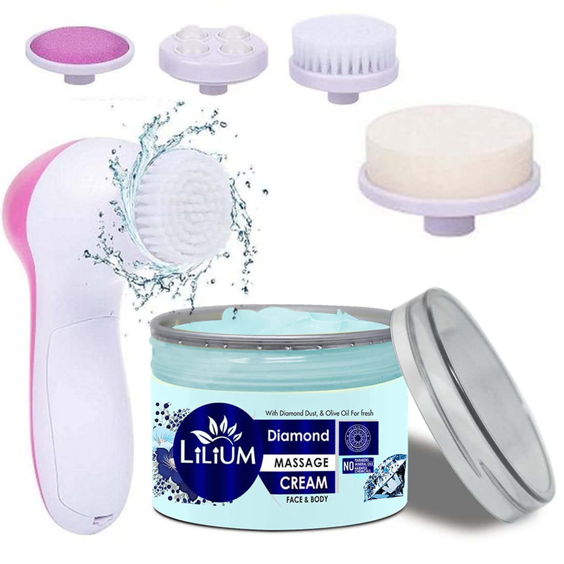 Lilium Diamond Face & Body Massage Cream & Multifunction 5in1 Massager (250g)