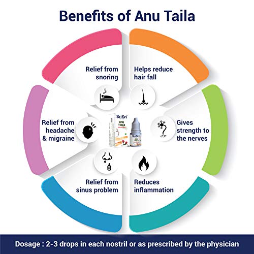 Anu Taila is tridoshashamaka anti-inflammatory and gives strength to the nerves. It is useful in Vata Pitta Khapha imbalances as it balances the tridosha. It is an effective formulation which nourishes and strengthens all the five sense organs - ears eyes nose tongue and throat. It is used in the treatment of headache hair fall premature graying of hair migraines and diseases related to the five sense organs. It is also helpful in balancing the hormone producing glands in the head and neck area.