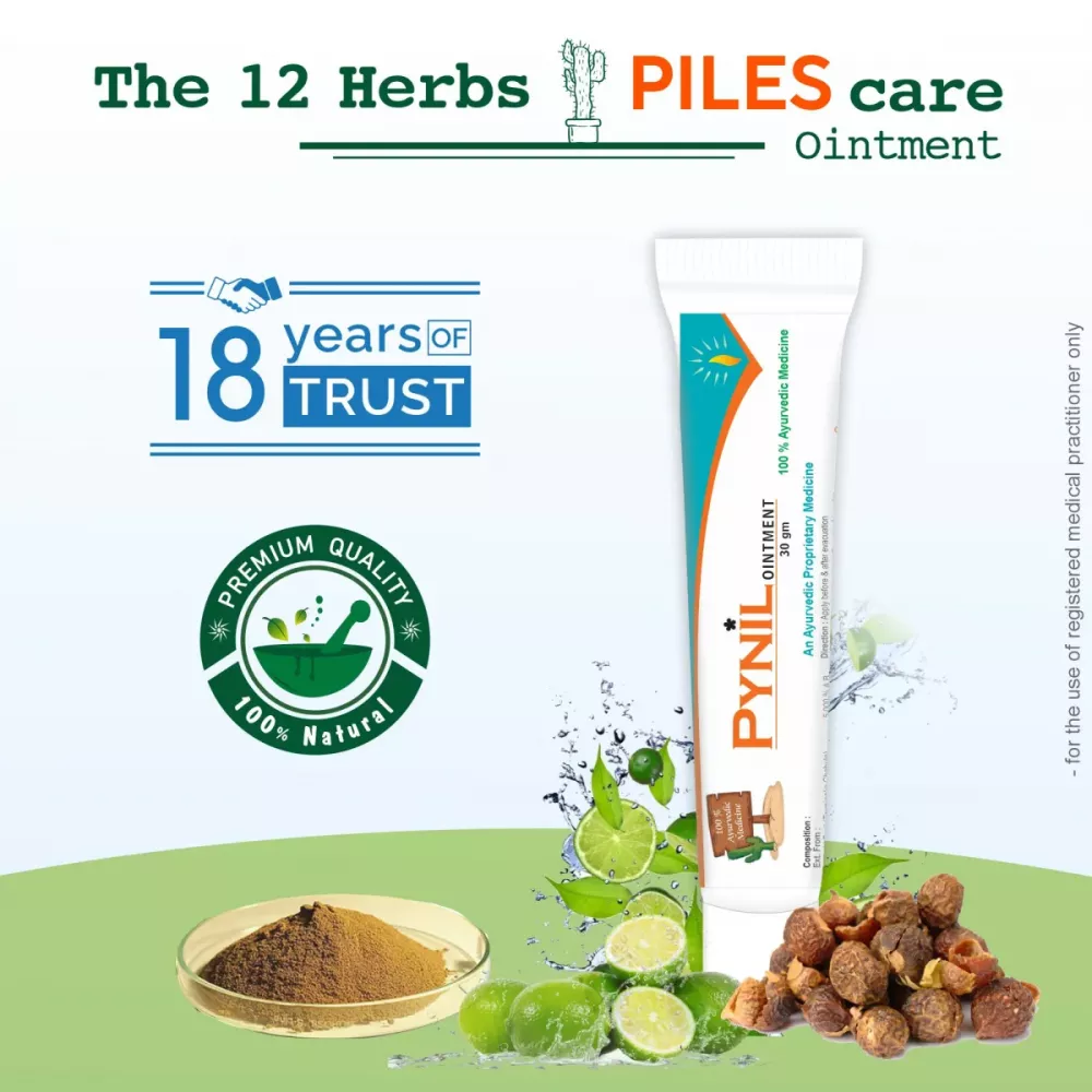 Pynil ointment is a piles reliever cream made with prestige authentic ayurvedic contains for reducing pain and burning sensation of a piles and its related problem. it cames in existence through mixing of total 12 selected herbs created namely Aritha Bhasma, Pittpapdo seeds, Haritaki Fruit, tankan, Nirgudi Oil, Inderjav seeds and many more.