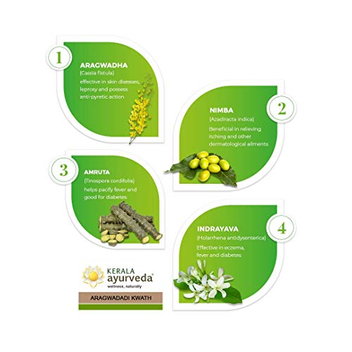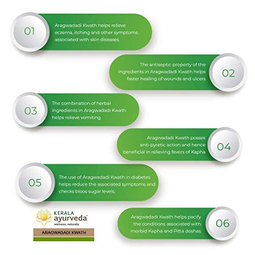 Aragwadadi Kwath is a classical Ayurveda formulation beneficial in various types of skin diseses. A herbal decoction that helps tackle vitiated Kapha Aragwadadi Kwath is also beneficial in reducing the symptoms associated with Diabet. The combination of ingredients in Aragwadadi Kwath helps relieve vomiting fever and itching related to various skin diseses.