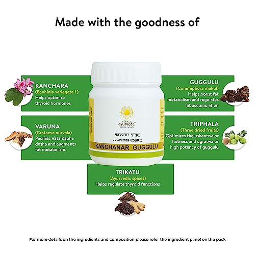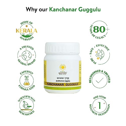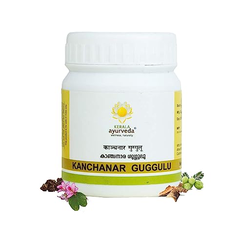 Kanchanaragulgulu is an Ayurvedic formulation in tablet form beneficial in abnormal growths inside the body. When taken with suitable adjuvants Kanchanaragulgulu helps in relieving the symptoms of goitre tumors skin diseses ulcers fistula-in-ano etc. It also helps the symptoms related to cysts fibroids and abdominal distension.