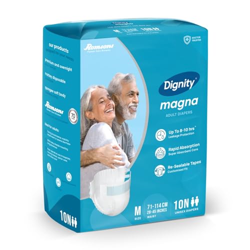 Dignity Magna Adult Diapers Tape Style - 10 Count (Medium) with Extra Absorbent Core, Wetness Indicator, Waist Size 28" - 45", 10 Pcs/Pack (Pack of 1)