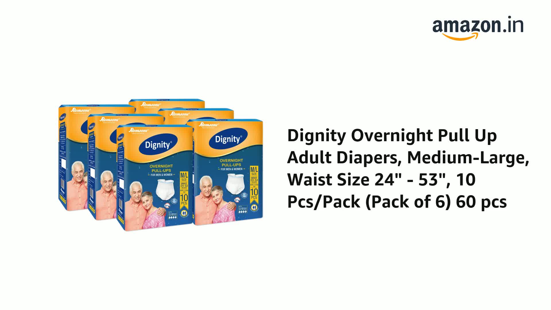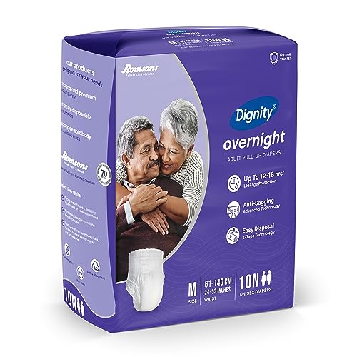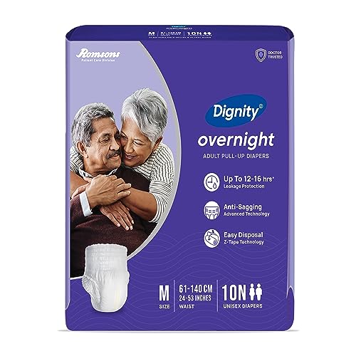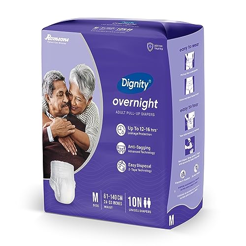 Dignity Overnight Pull Up Adult Diapers Pant Style - 60 Count (Medium) with Soft Elastic and Extra Absorbent Core, Waist Size 24" - 53", 10 Pcs/Pack (Pack of 6)