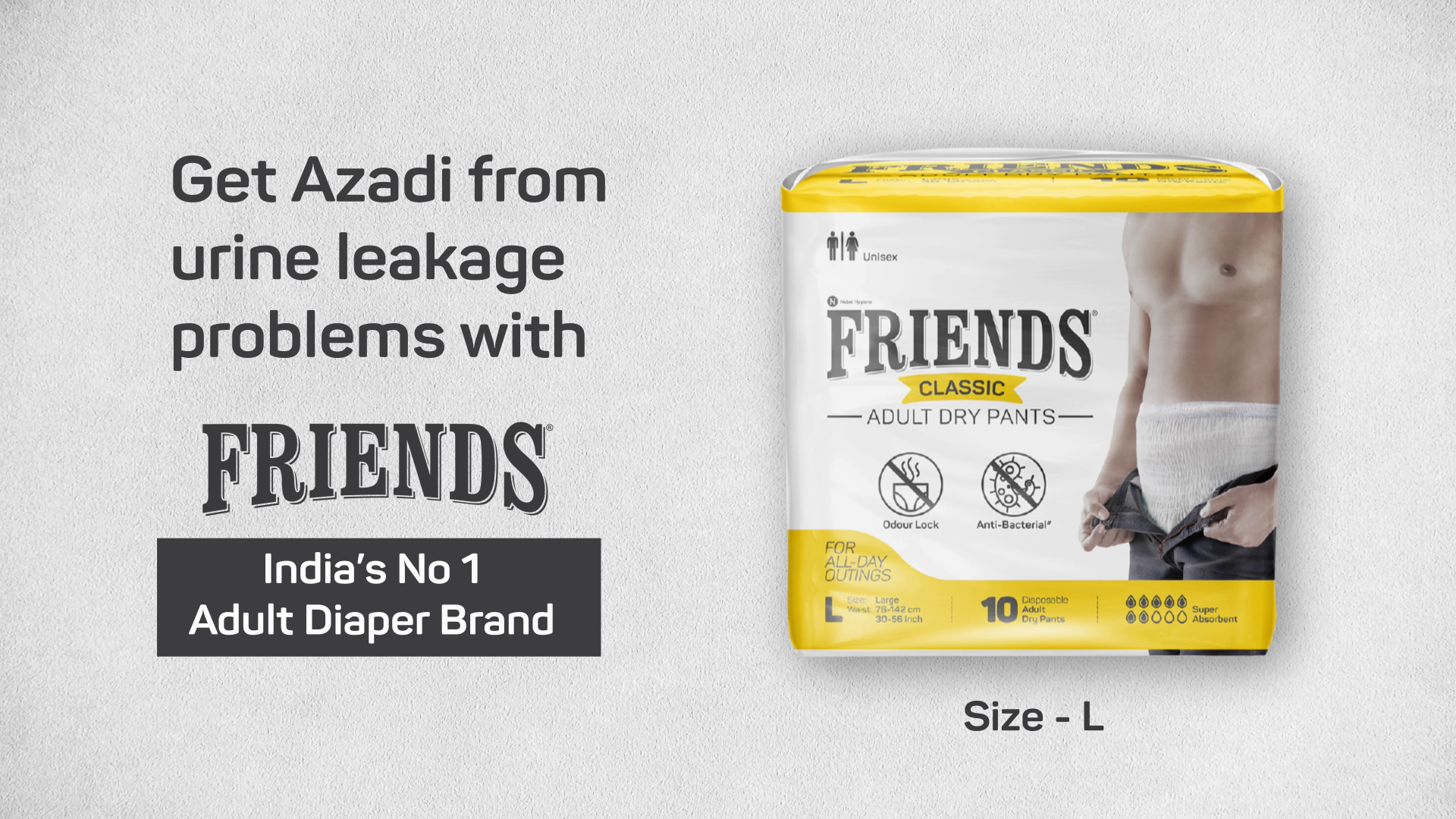 • Friends Adult Diapers large size pant style with 8 hours of protection are also available in sizes M XL and XXL.