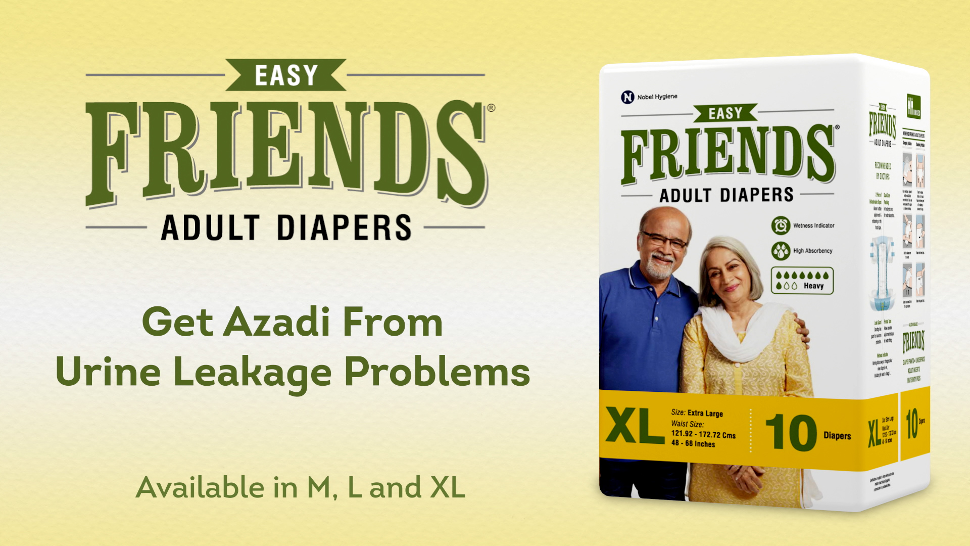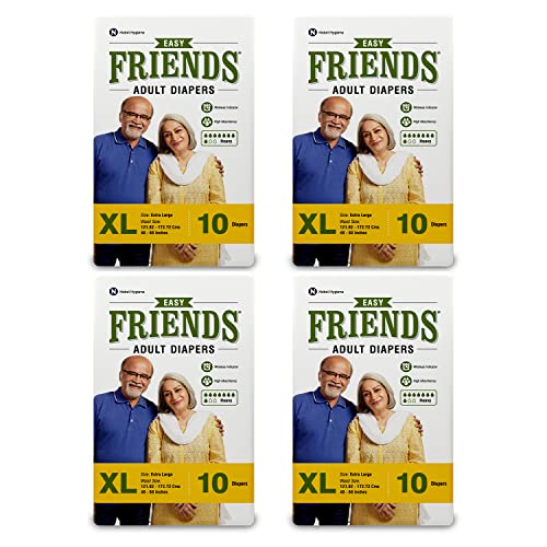 Friends Easy Adult Diapers Tape Style - 40 Count (Extra Large) with odour lock, Unisex, Leakproof, Wetness Indicator and Anti-Bacterial Absorbent Core- Waist Size 35.43-65.35 inch; 90-166 cm