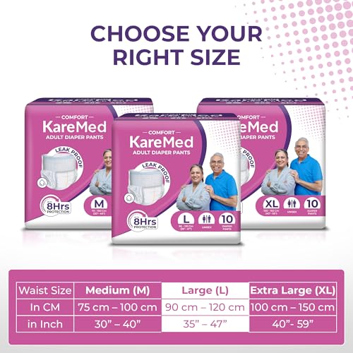 KareMed Comfort Adult Diaper Pants with Large 90 - 120 Cm (35"- 47") is a pant style diaper. It is Unisex and comes with Leakproof Elastic Waist and Wetness Indicator