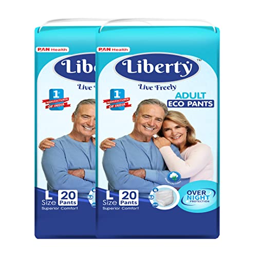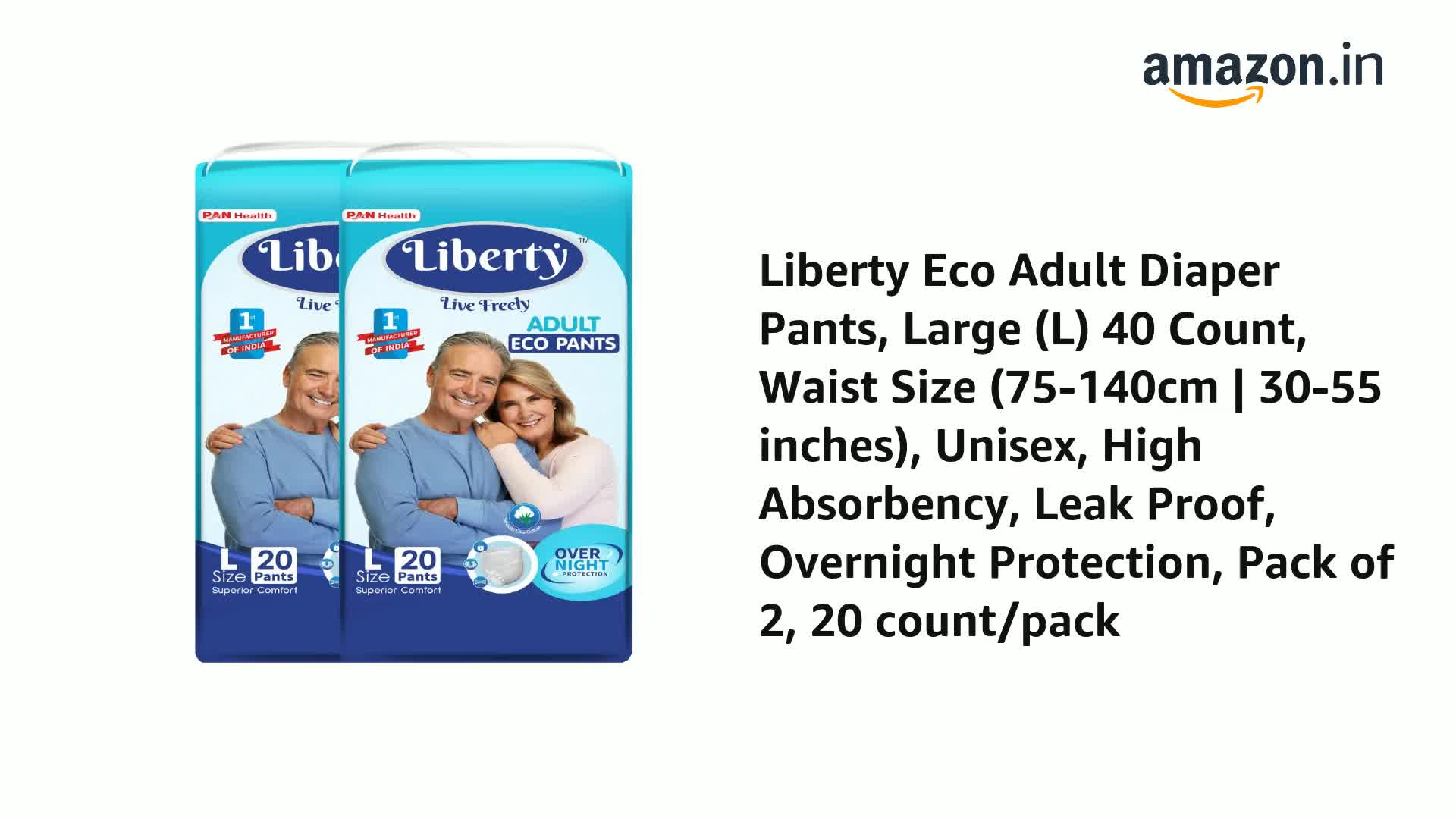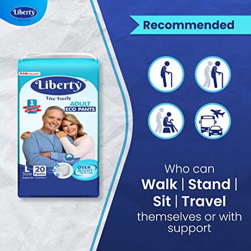 Liberty Eco Adult Diaper Pants, Large (L) 40 Count, Waist Size (75-140cm | 30-55 inches), Unisex, High Absorbency, Leak Proof, Overnight Protection, Pack of 2, 20 count/pack